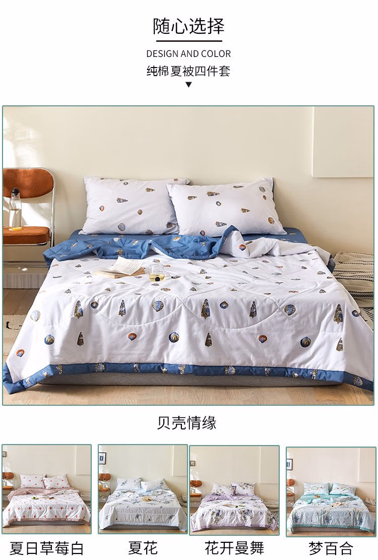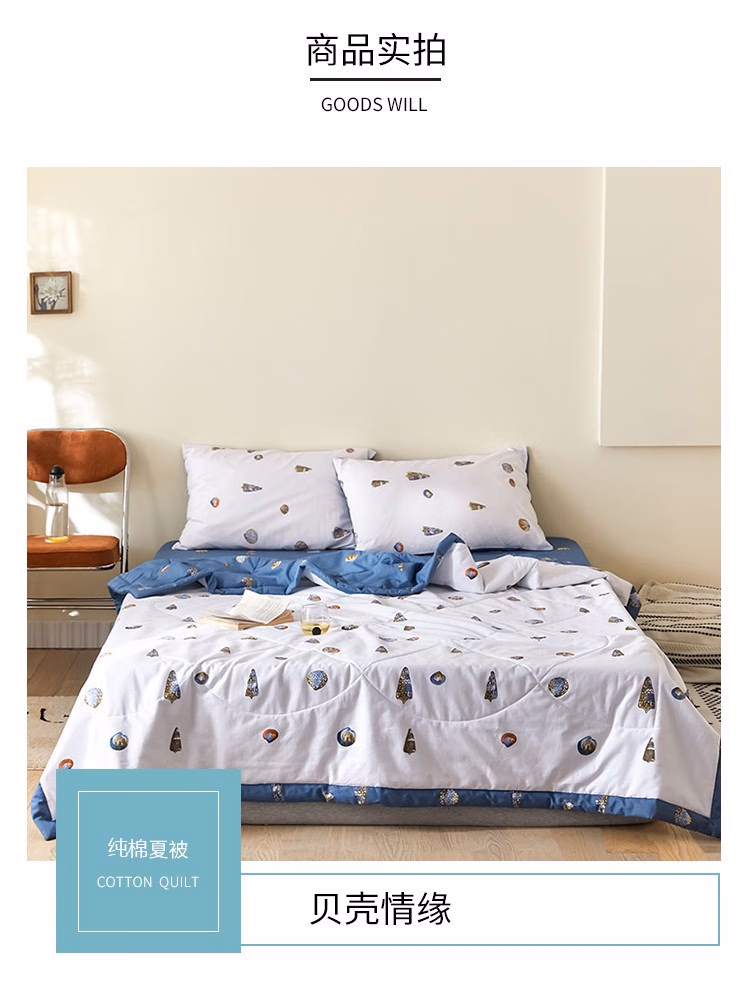 伊伊爱 Z02000118 /150*200cm 贝壳情缘 全棉喷气印花夏被舒适空调被子 (计价单位:件) 白色