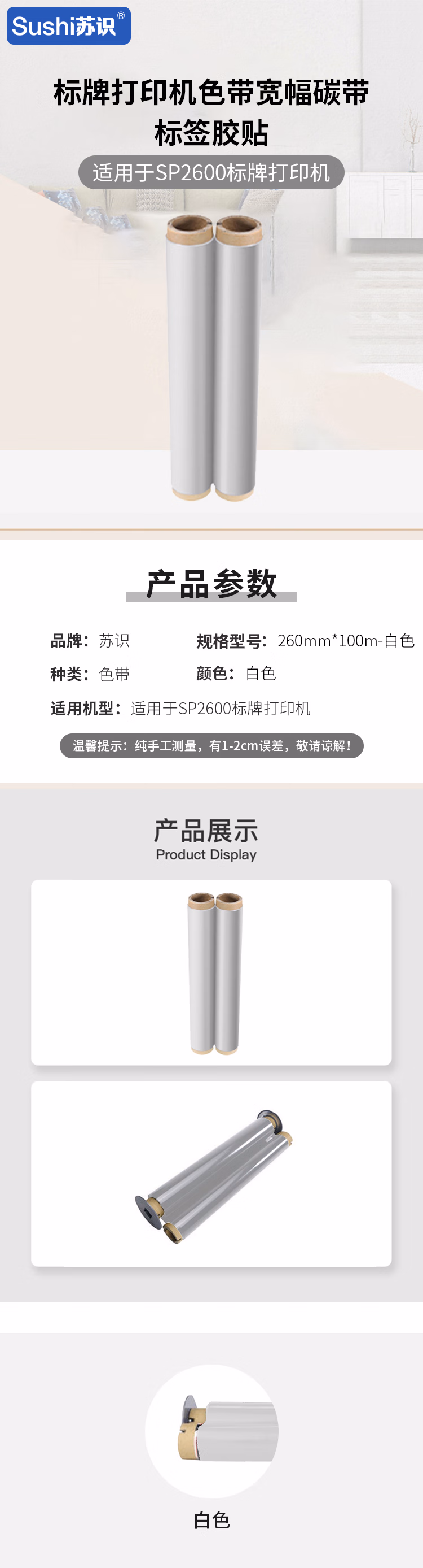 苏识 260mm*100m-白色 标牌打印机色带宽幅碳带 1.00 个/卷 (计价单位:卷) 白色
