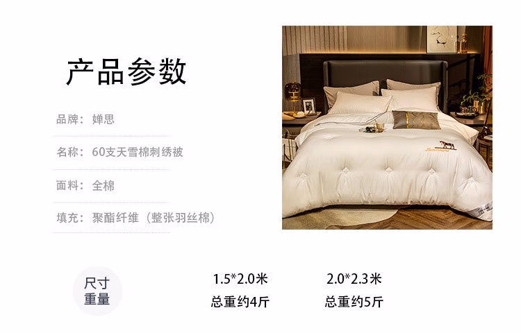 婵思 BZQTDC2000332 150*200cm 4斤 天雪棉60支KJ 刺绣被 1.00 件/条 (计价单位:条) 灰色