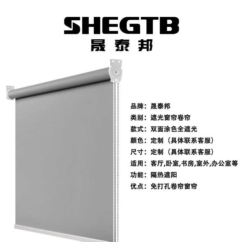 晟泰邦 办公室遮光窗帘卷帘隔热遮阳免打孔卷帘窗帘双面涂色全遮光 颜色尺寸定制 单位:卷