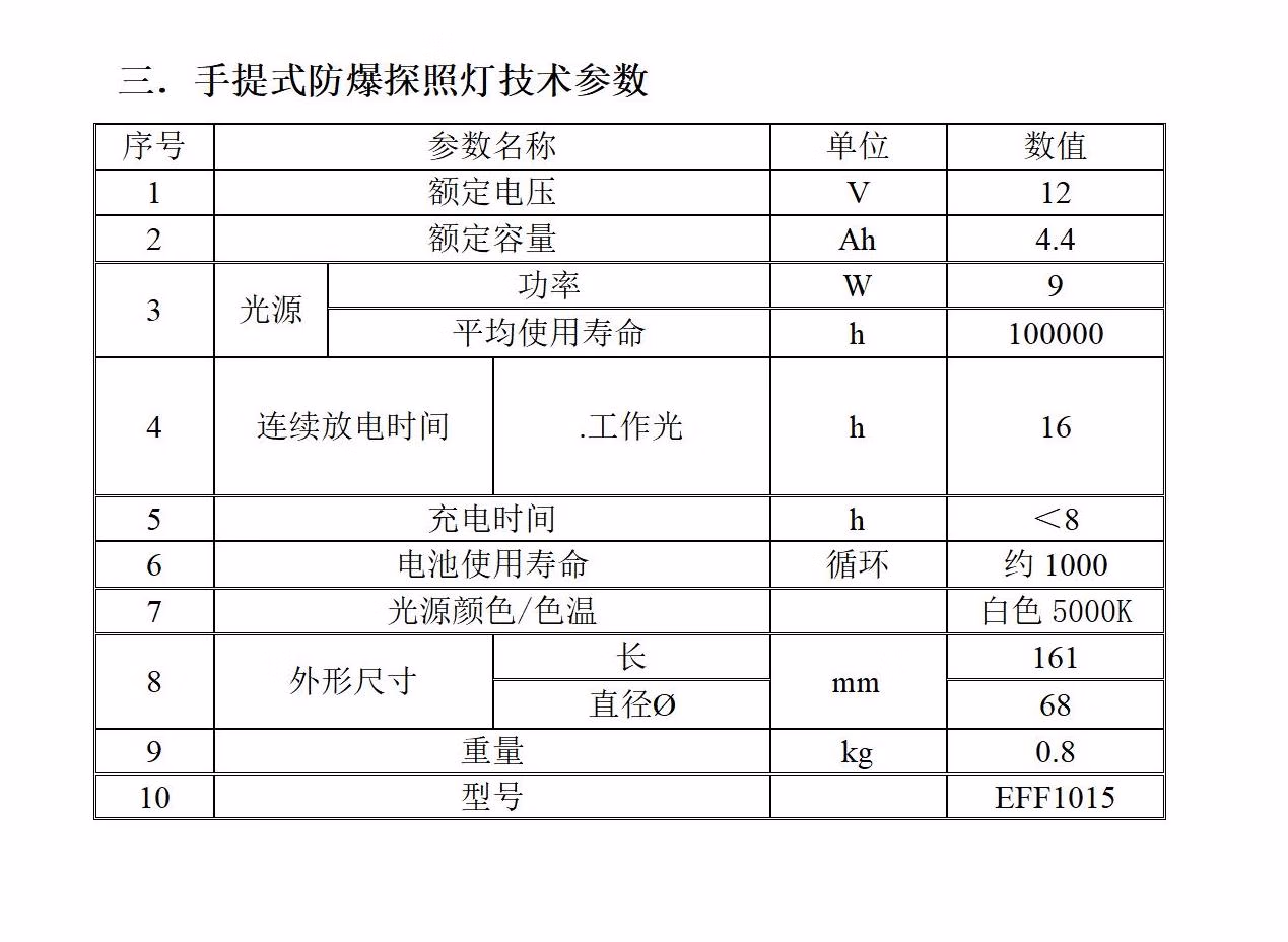 熠飞(EEEFEI) EFF1050 9W,IP68,防爆标志Ex ibⅡC T6 Gb,续航时间:16h,12V,白色5000K,LED 手提式防爆探照灯 1.00 盏/套 (计价单位:套) 白色