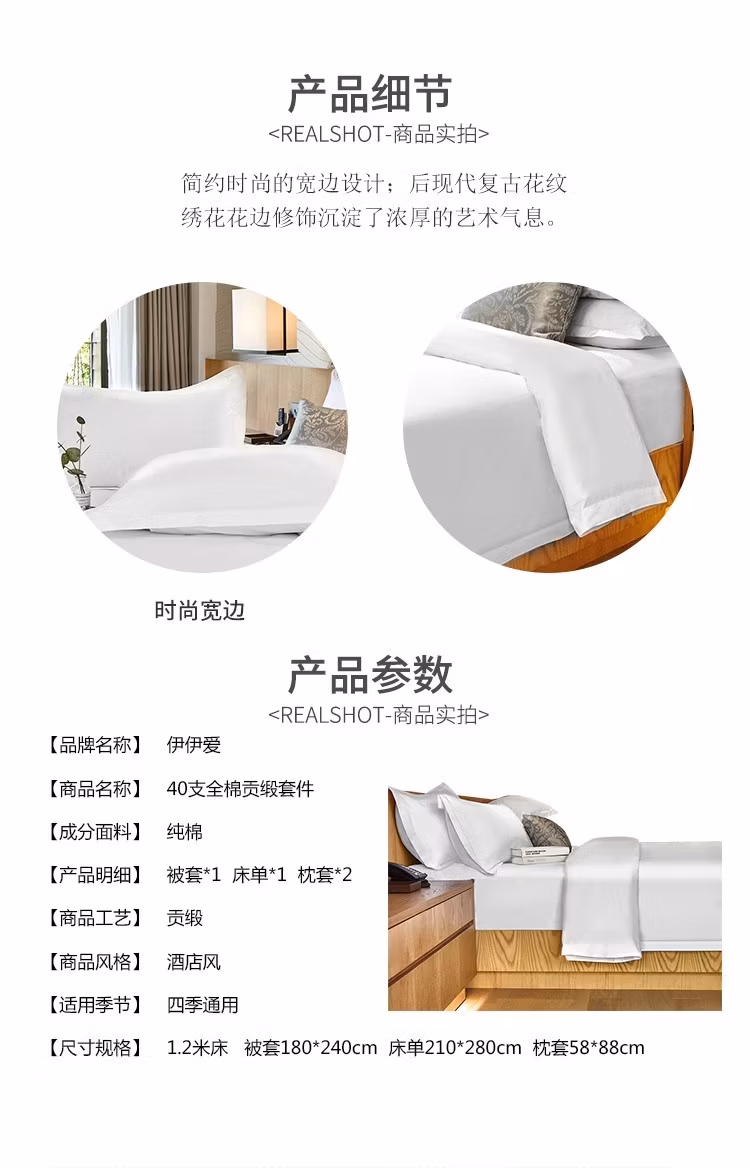 伊伊爱 T02000286 1.2米床 贡缎纯棉高密(含被芯) 四件套 (计价单位:套) 白色