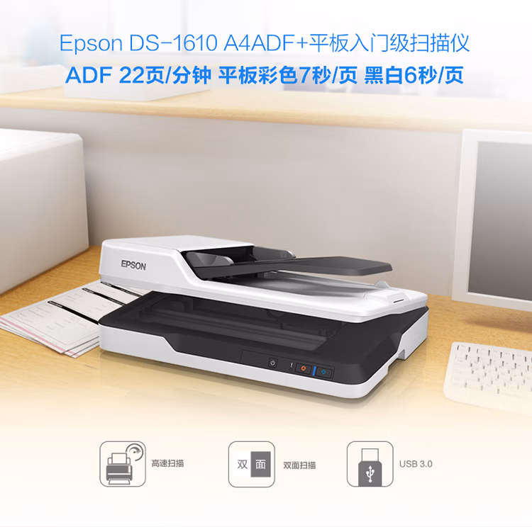 爱普生(Epson) DS-1610 A4幅面 平板&馈纸式 扫描仪 (计价单位:台) 白色