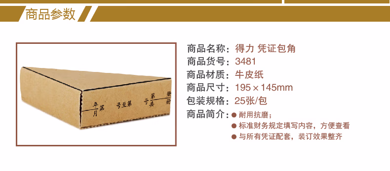 得力(deli) 3481 195*145mm 牛皮纸 凭证装订包角封面纸 25.00 个/包 (计价单位:包)
