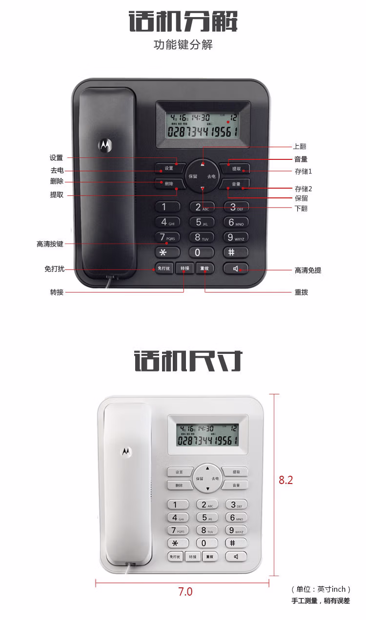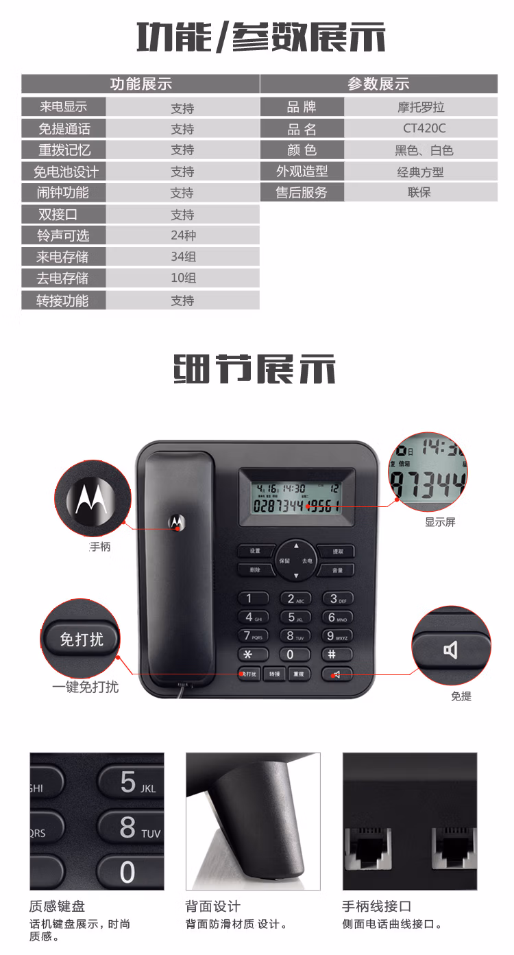 摩托罗拉(Motorola) CT410C 黑色 有线座机 电话机 (计价单位:台) 黑色