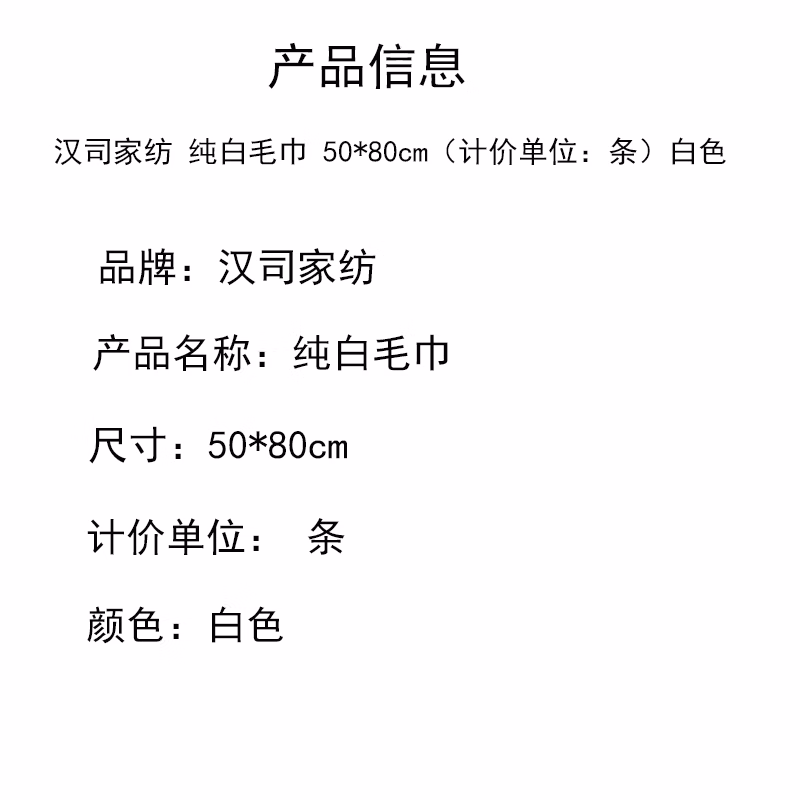 汉司家纺 纯白毛巾 50*80cm 毛巾 (计价单位:条) 白色