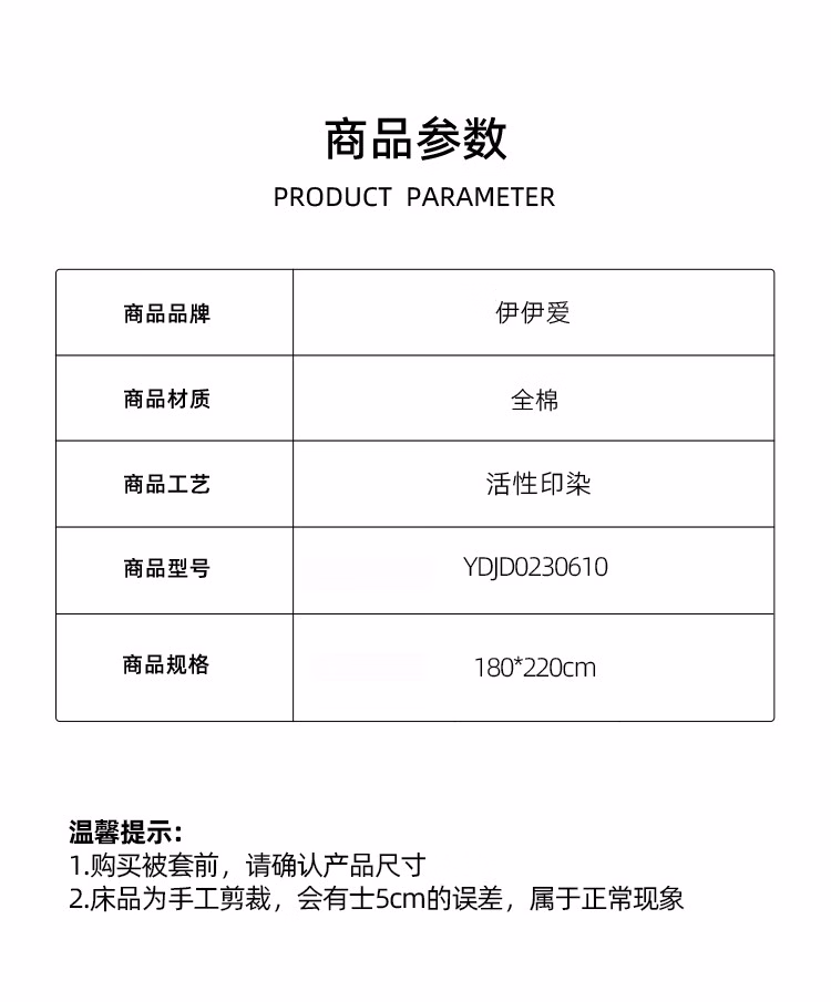 伊伊爱 YDJD0230610/180*220cm 60*80S 喷气全棉贡缎纯白被套 (计价单位:件) 白色