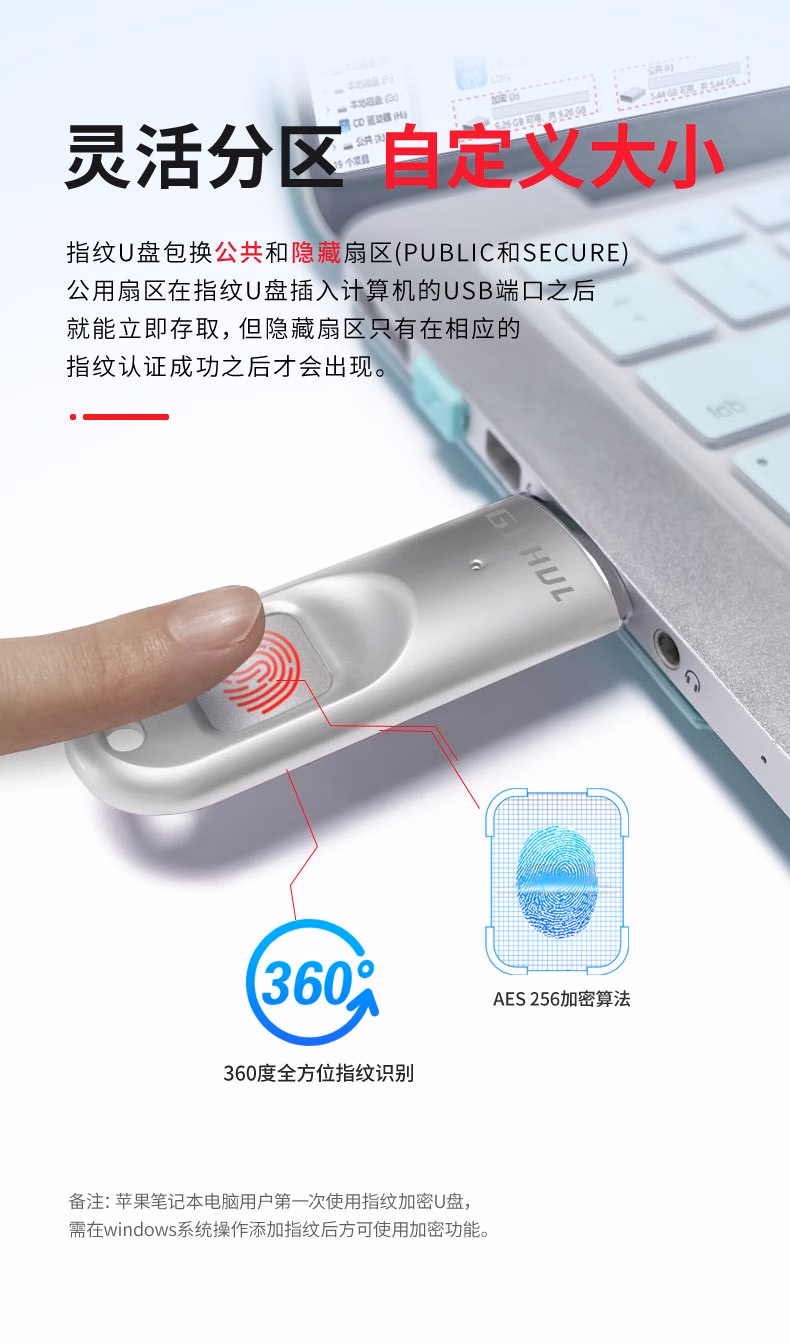 杰储(GCHUL) U110 32G USB3.0 指纹加密U盘 (计价单位:个) 银色