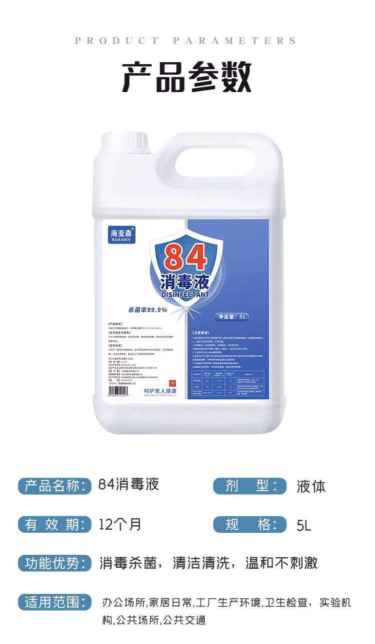 海亚森 TK-7009 5L/桶 4桶/箱 84消毒液 1.00 瓶/桶 (计价单位:桶)