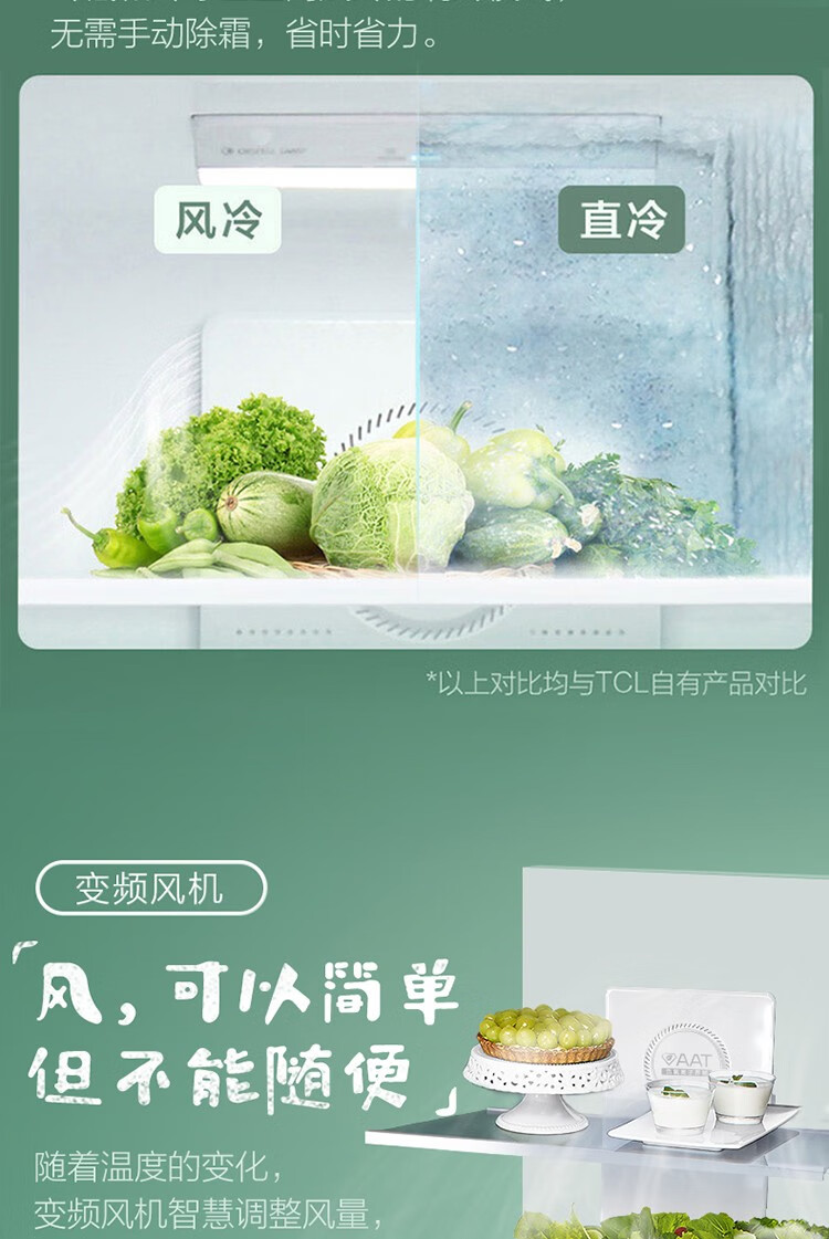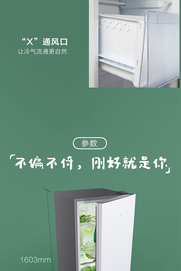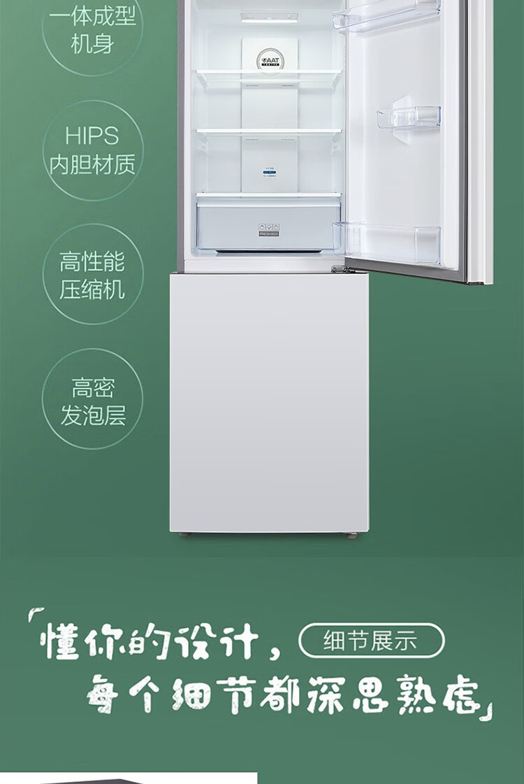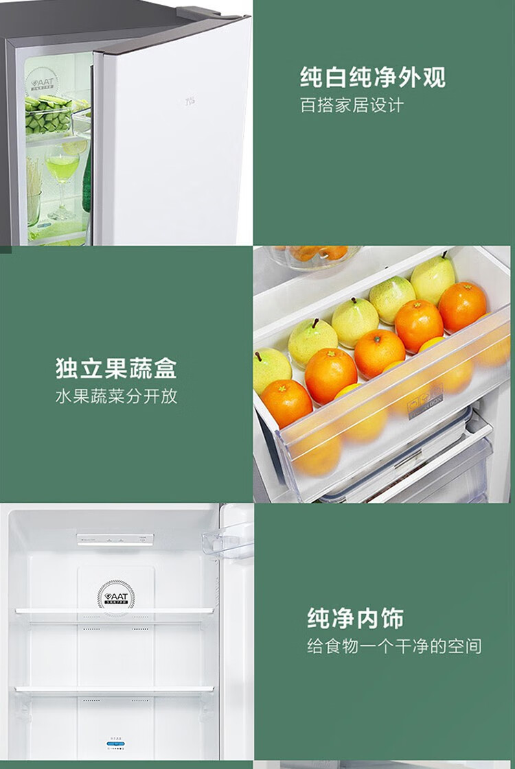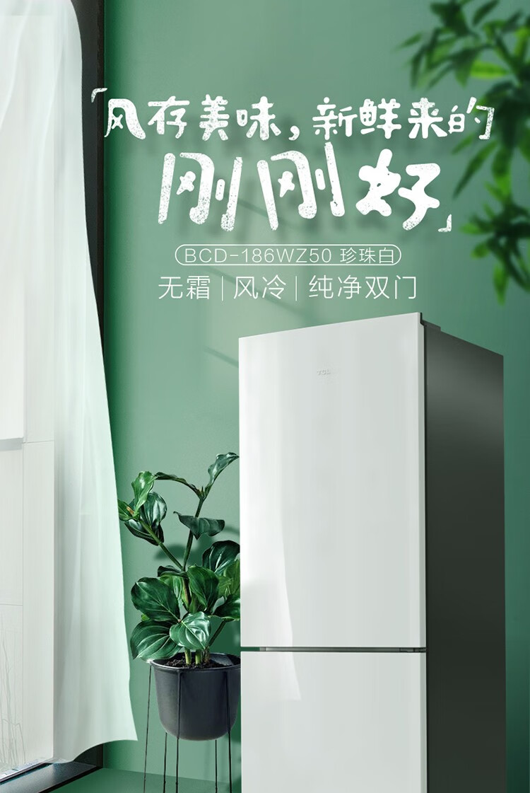 TCL 186升珍珠白双门节能环保养鲜冰箱 风冷无霜独立双控温 节能低音 小型迷你便捷冰箱 BCD-186WZA50 单位:台
