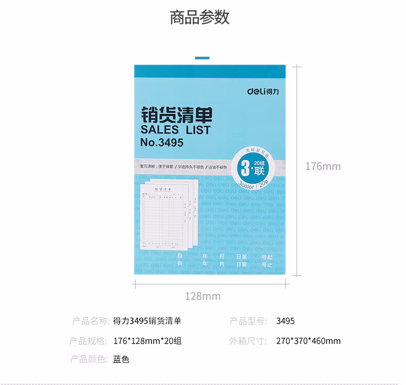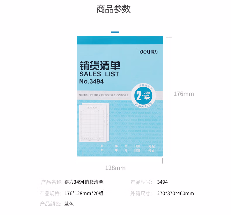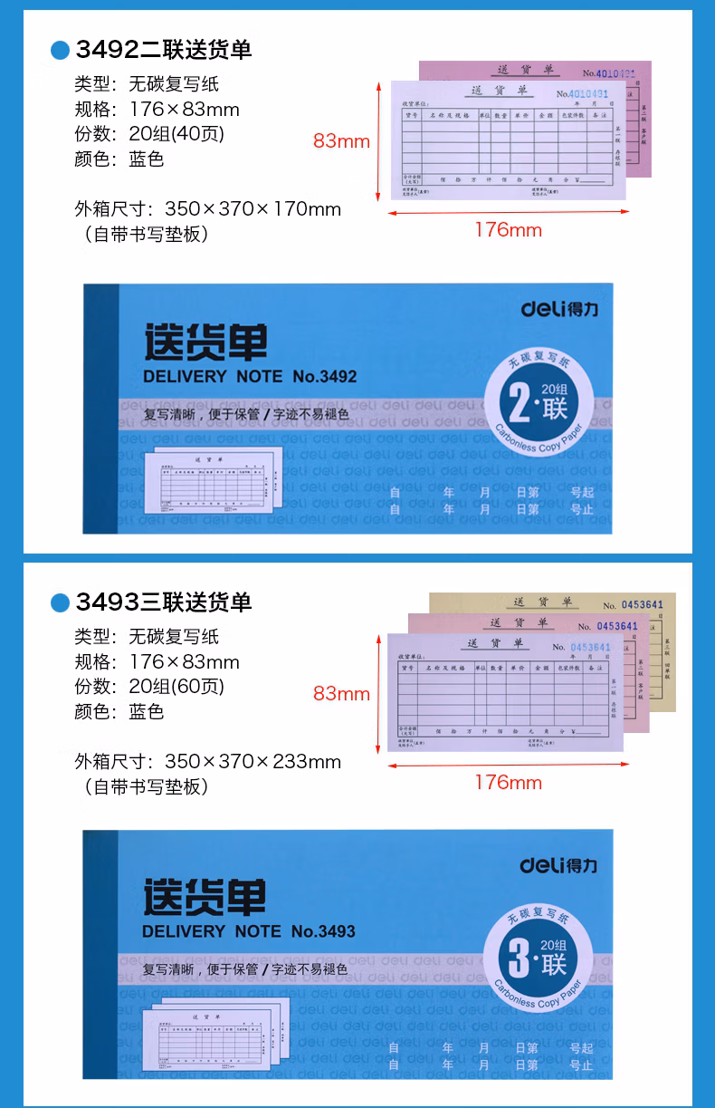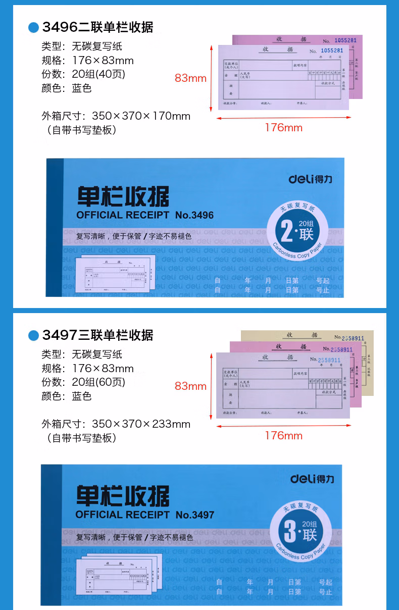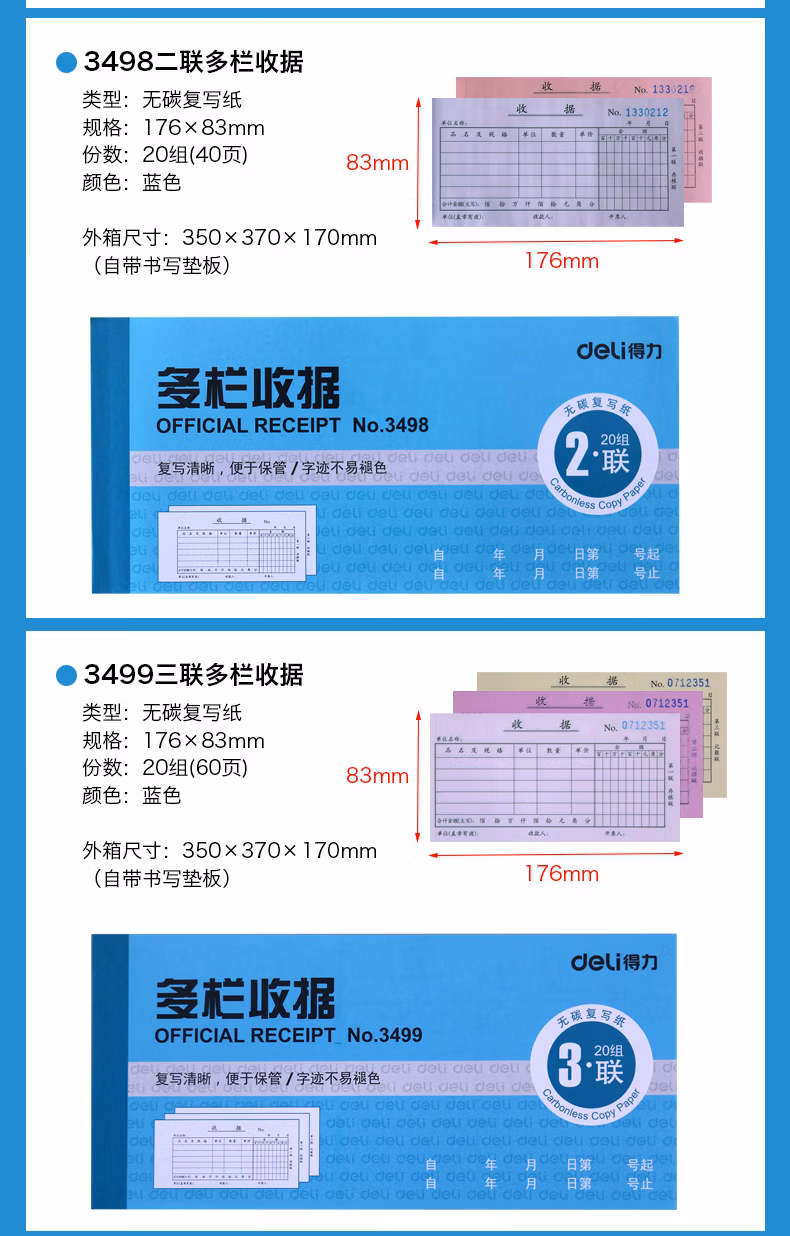 得力(deli) 3498 二联多栏 收据 (计价单位:本) 蓝色