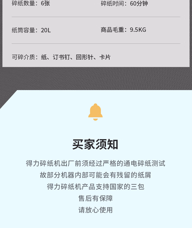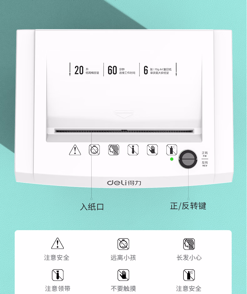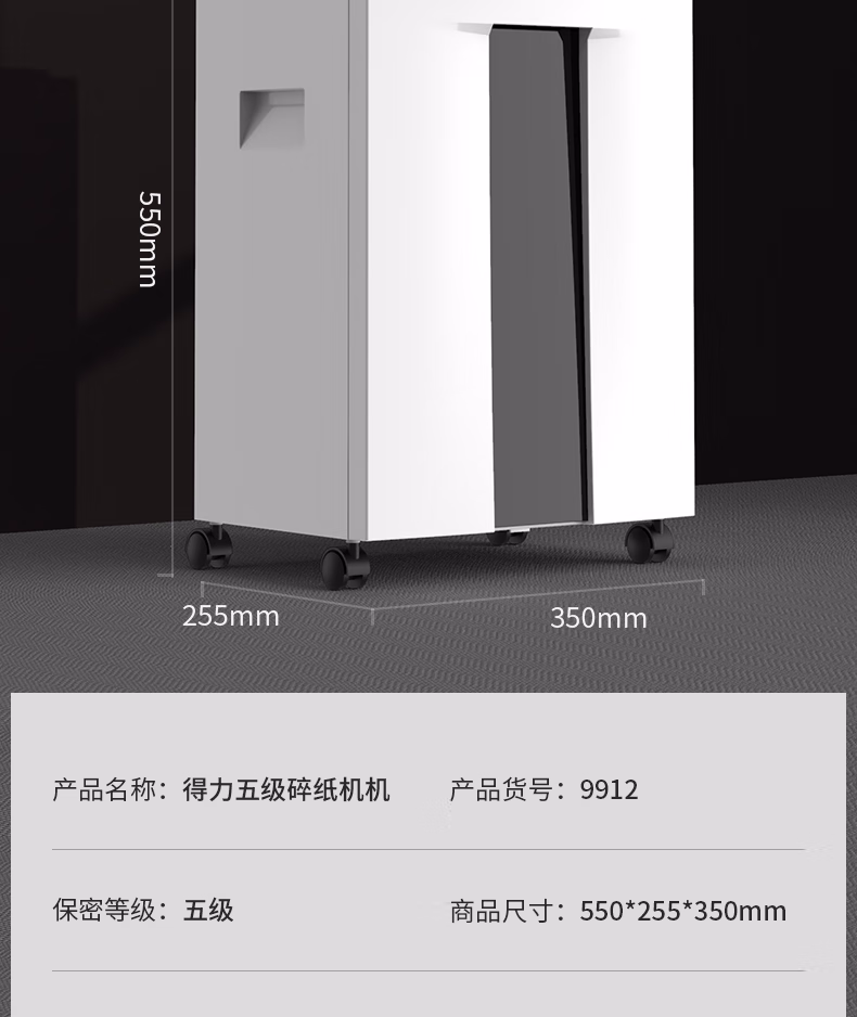 得力(deli) 9912 20L 5级保密 碎纸机 (计价单位:台) 白色
