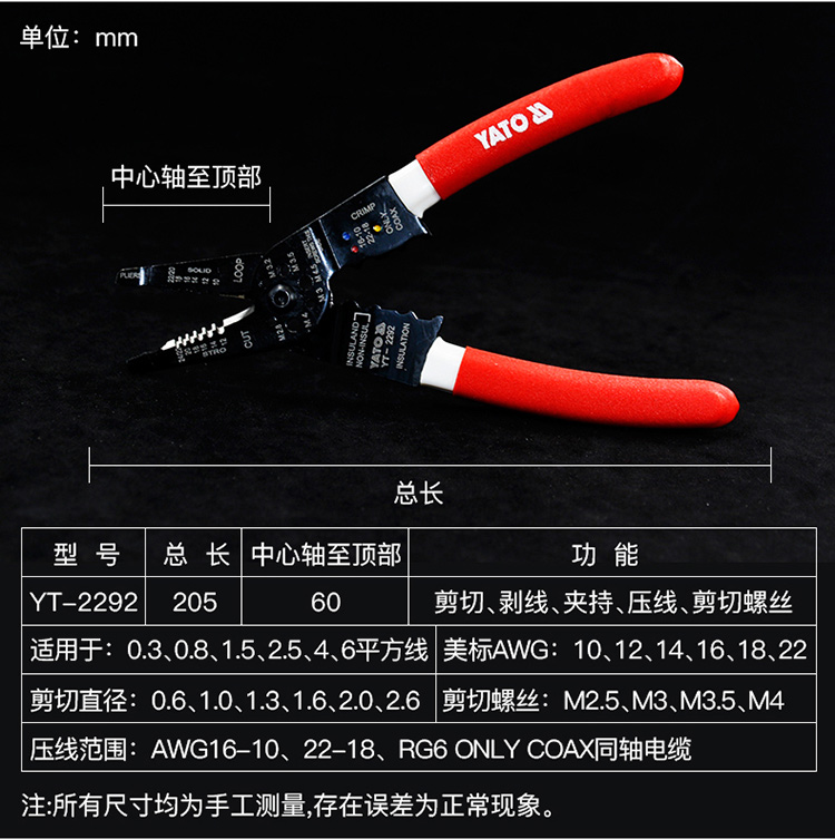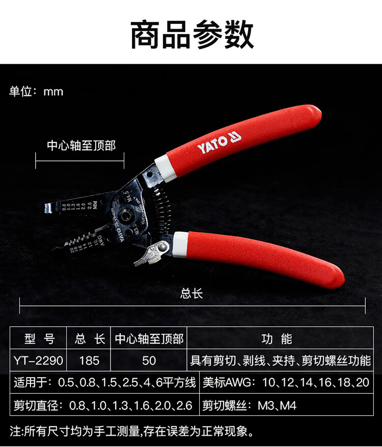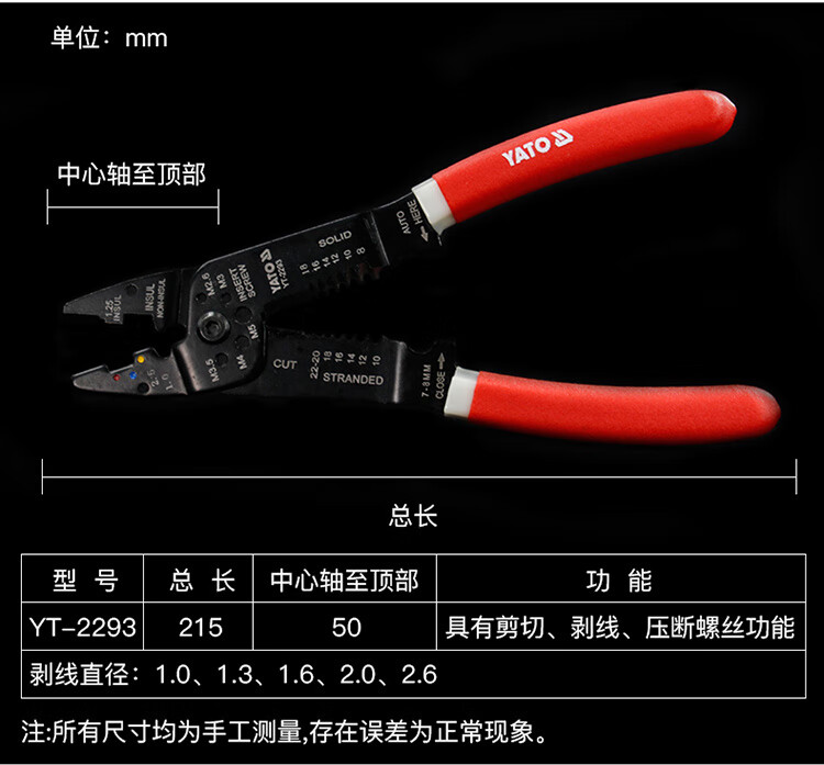 易尔拓 YATO 剥线钳电工工具剪线钳电缆剥线钳子YT-2290【剥线专用推荐款】YT-2290 单位:把