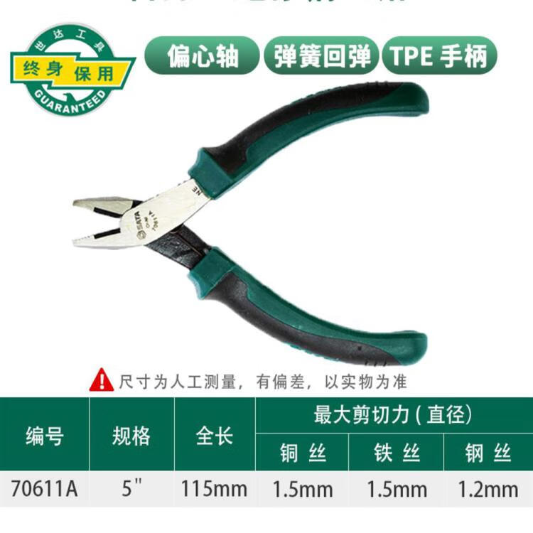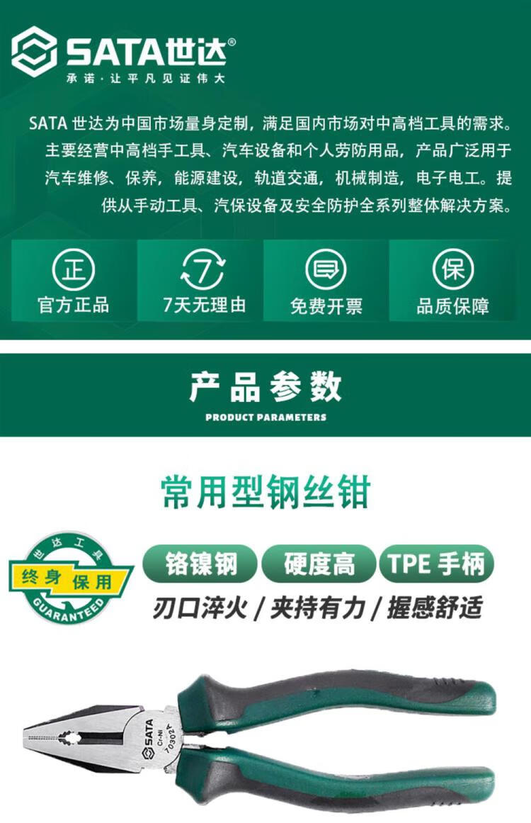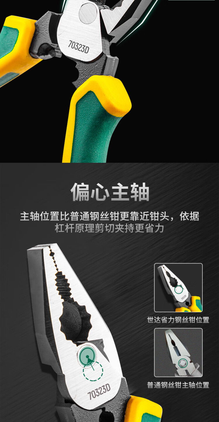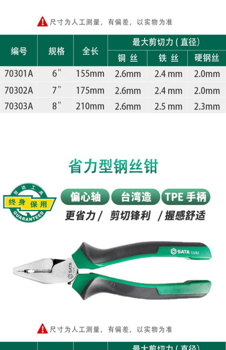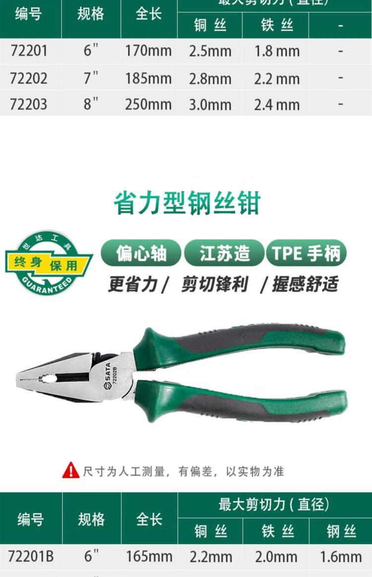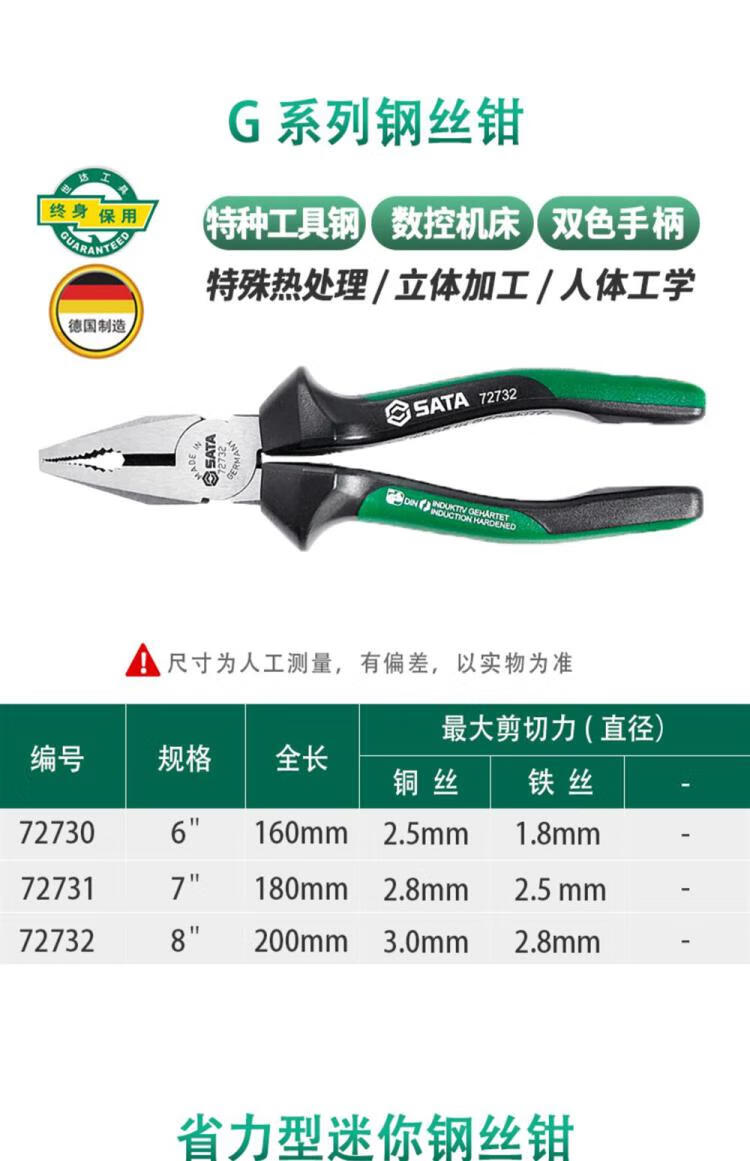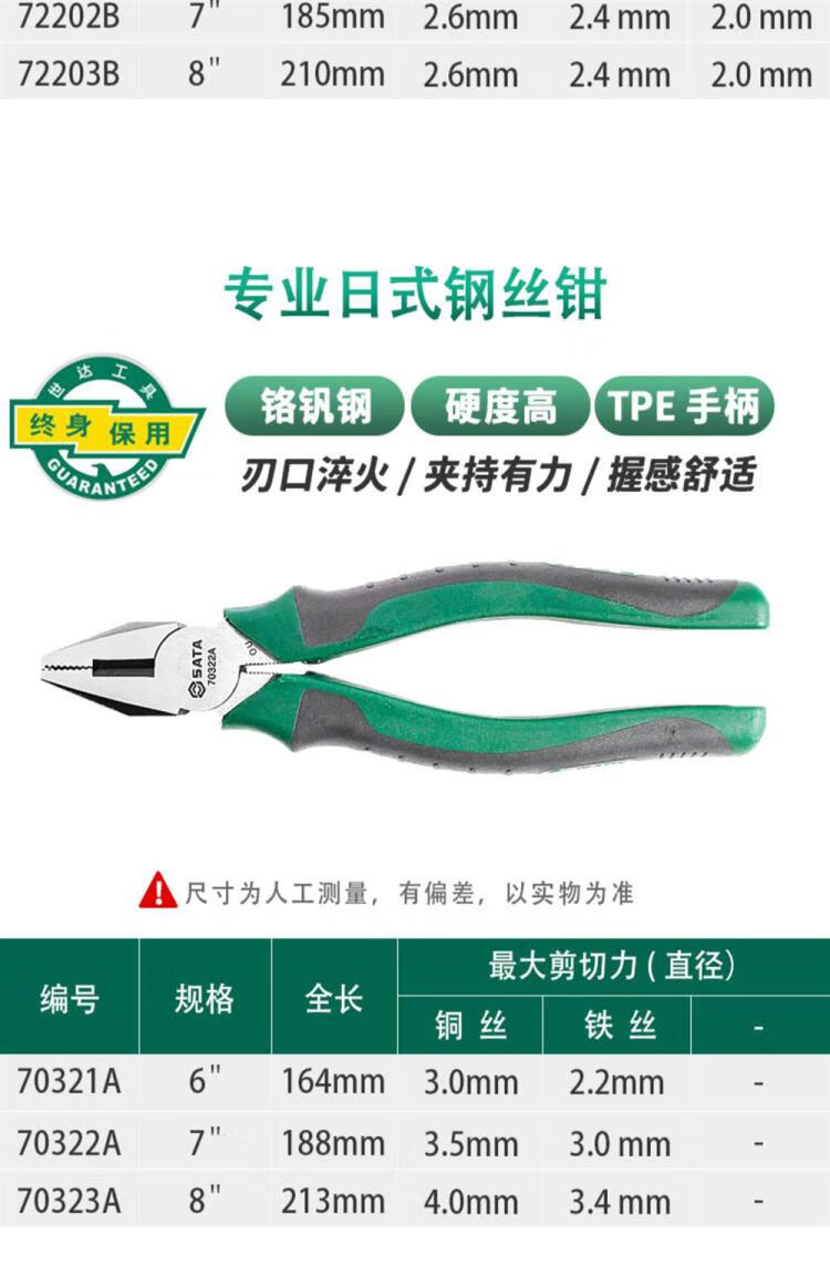 世达钢丝钳老虎钳6寸7寸8寸电工省力型日式钳子工具德国进口 70322A/日式7寸 单位:把