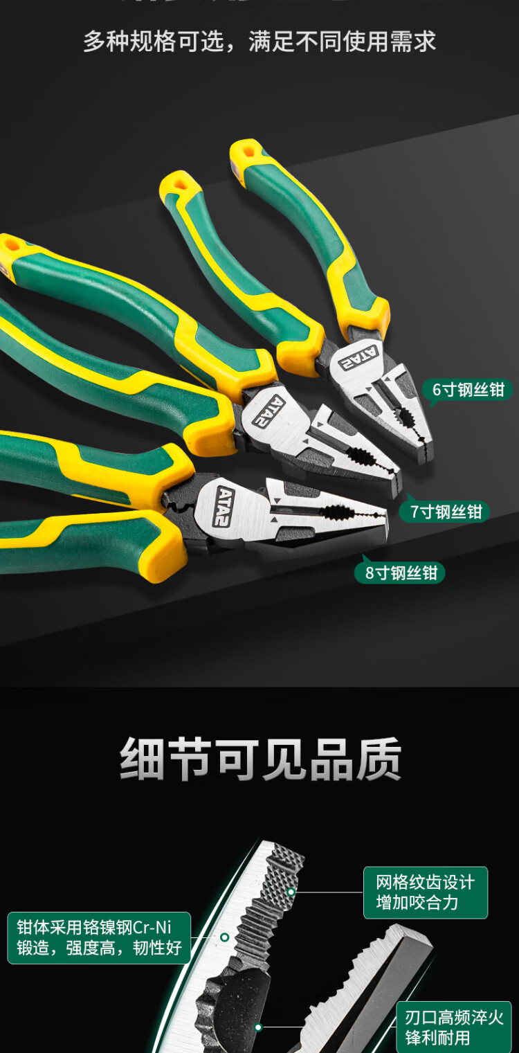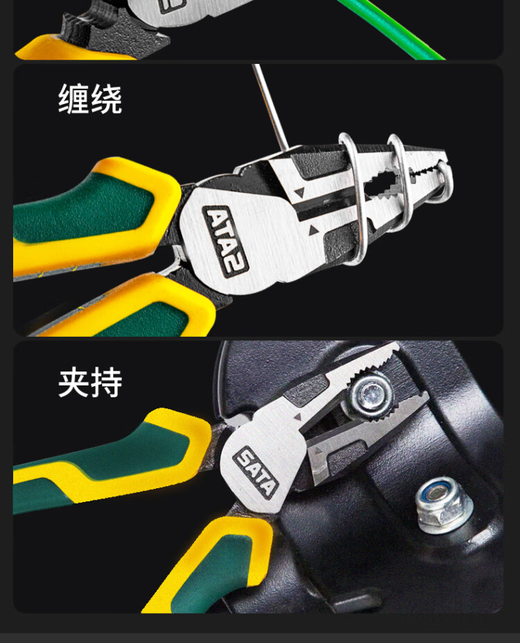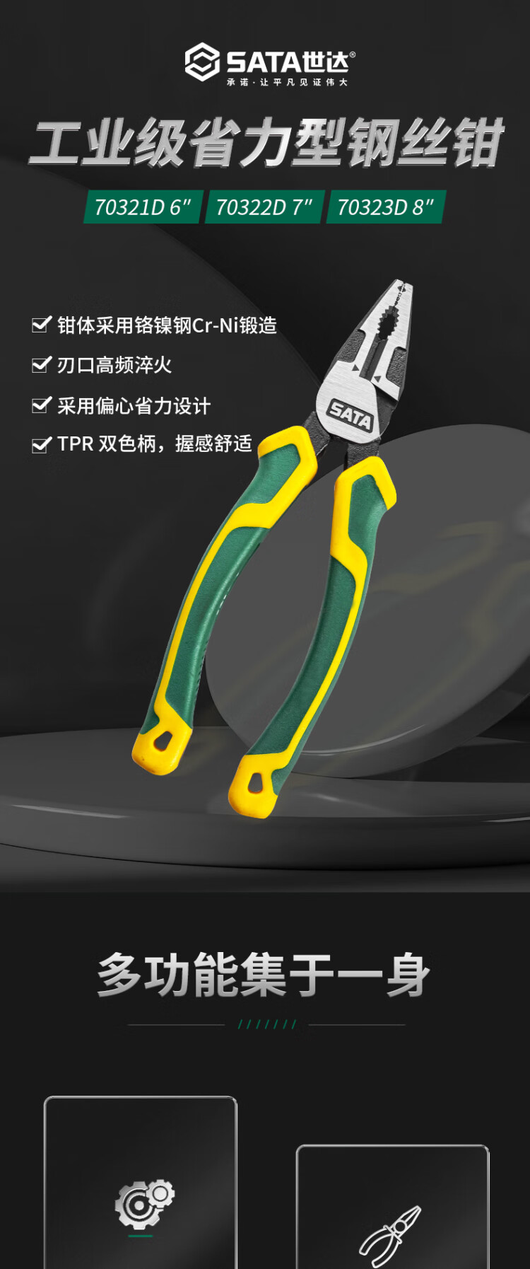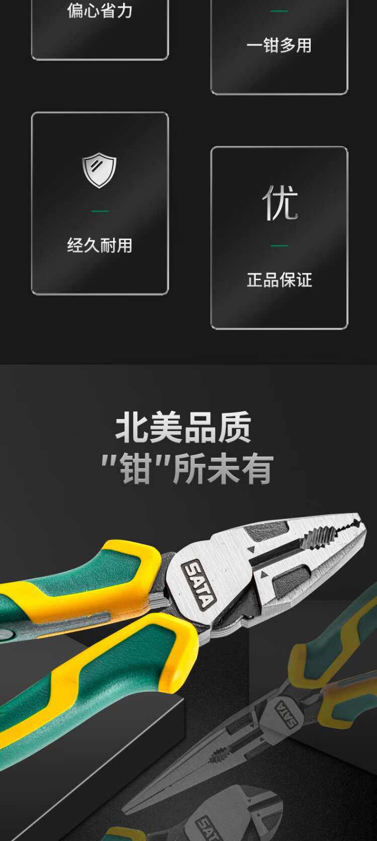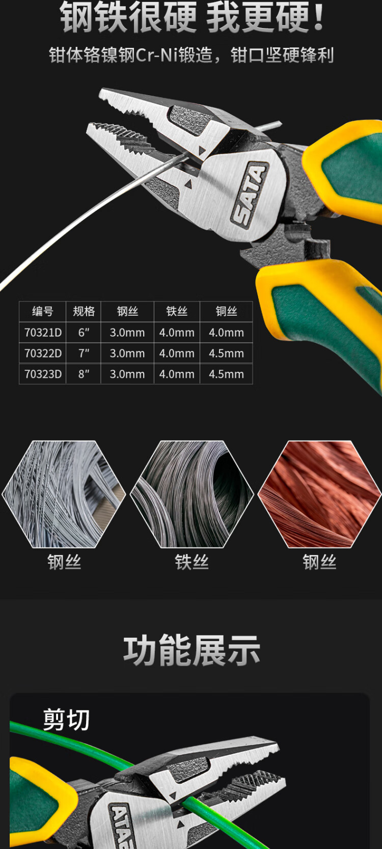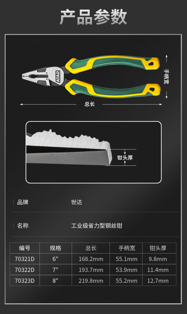 世达钢丝钳老虎钳6寸7寸8寸电工省力型日式钳子工具德国进口 70322A/日式7寸 单位:把