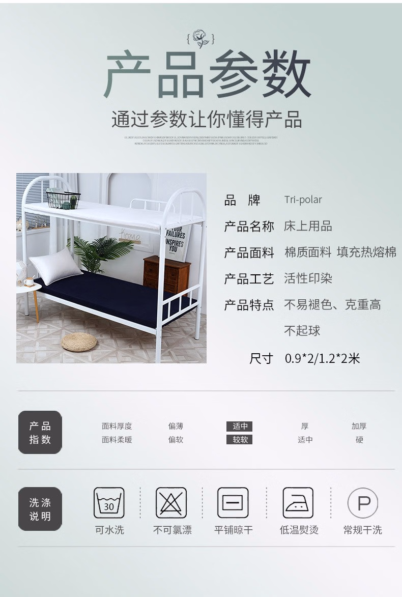 三极户外(Tri-Polar) TP2847 单位宿舍棉花褥子 0.9*2m 垫子褥子 1.00 件/个 (计价单位:个) 白色