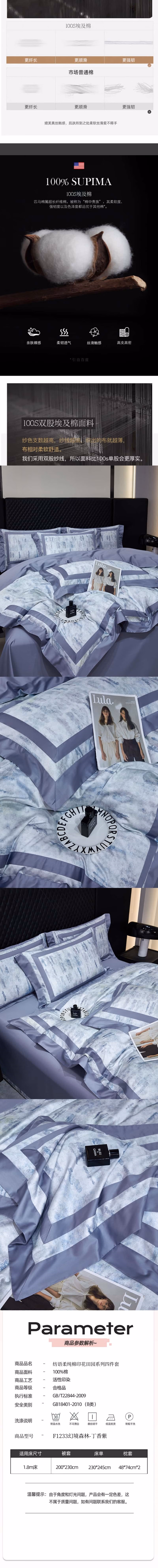 纺语柔 F1233 四件套 床上套件 (计价单位:套) 幻境森林-丁香紫