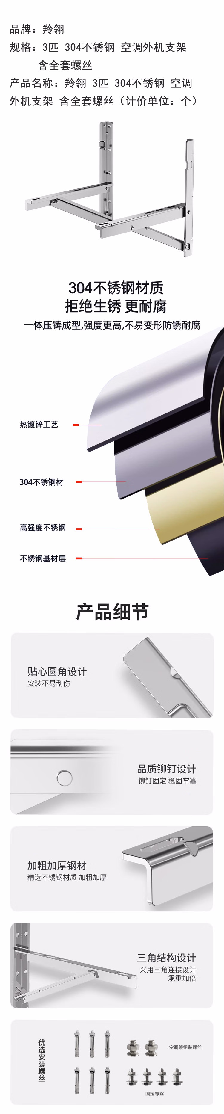 • 商品名称:羚翎 3匹 304不锈钢 空调外机支架 含全套螺丝(计价单位:个) 15