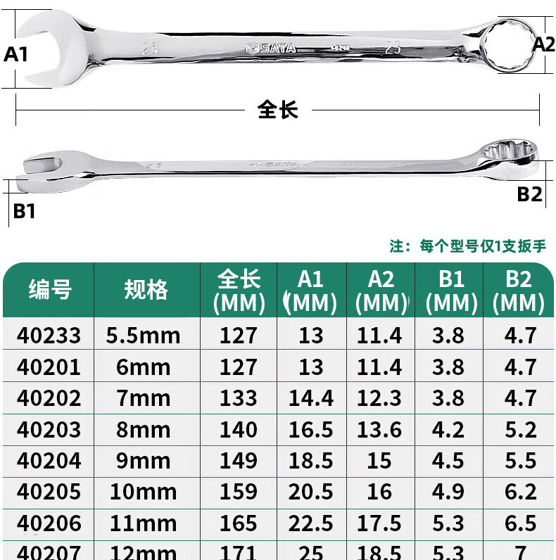 世达 (SATA)40212全抛光两用扳手17MM(1件) 单位:把