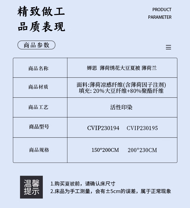 婵思 CVIP230194 150*200cm 薄荷绣花大豆夏被 1.00 件/条 (计价单位:条) 薄荷兰