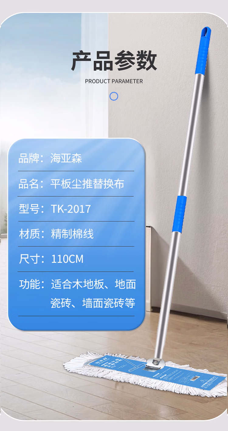 海亚森 TK-2017 110CM 平板尘推布头布罩 1.00 把/个 (计价单位:个) 蓝色