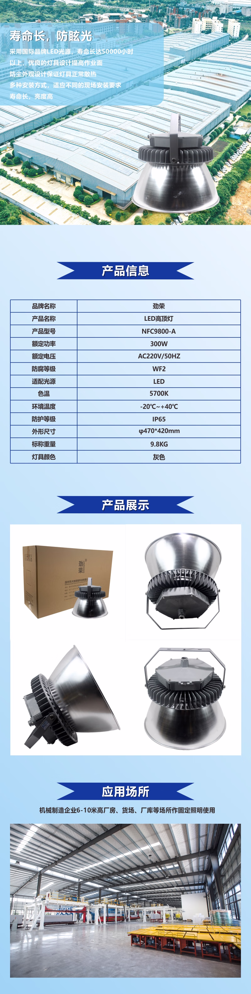 • 商品名称:劲荣(JINRONG)NFC9800-A 300W LED高顶灯(计价单位:个)灰色