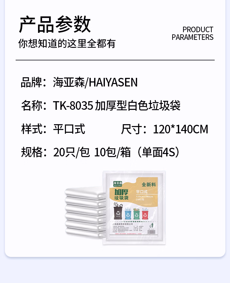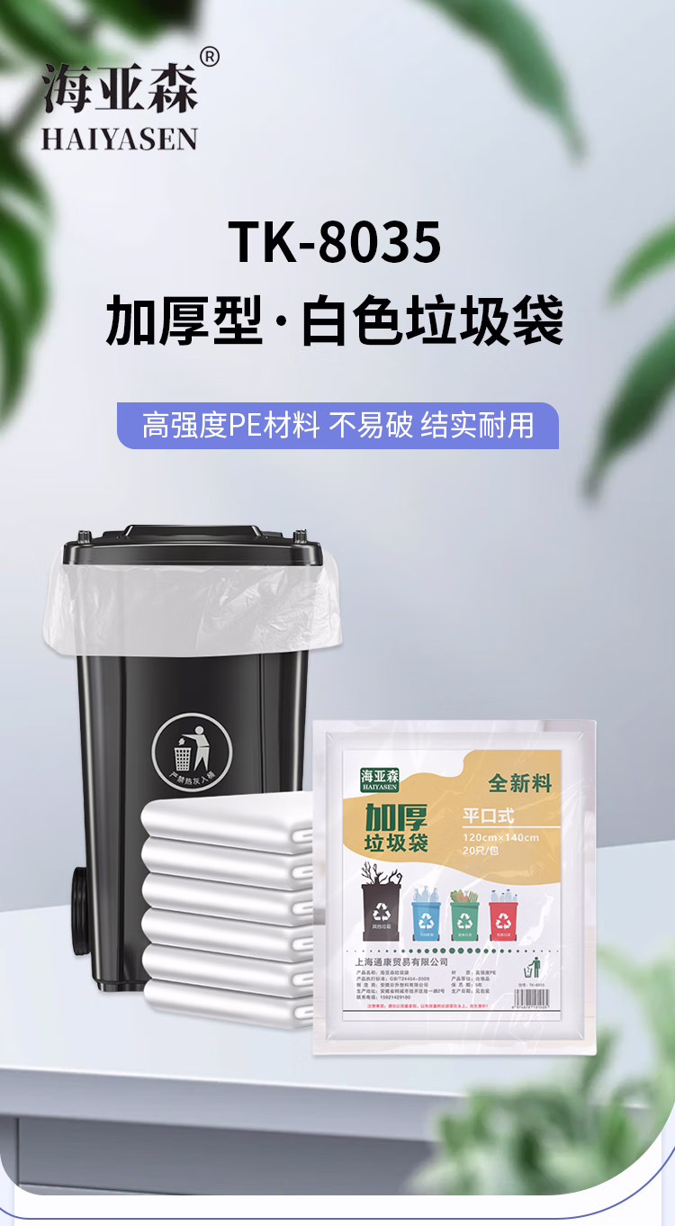 海亚森 TK-8035 120cm*140cm 20只/包 垃圾袋 (计价单位:包) 白色 2包起订