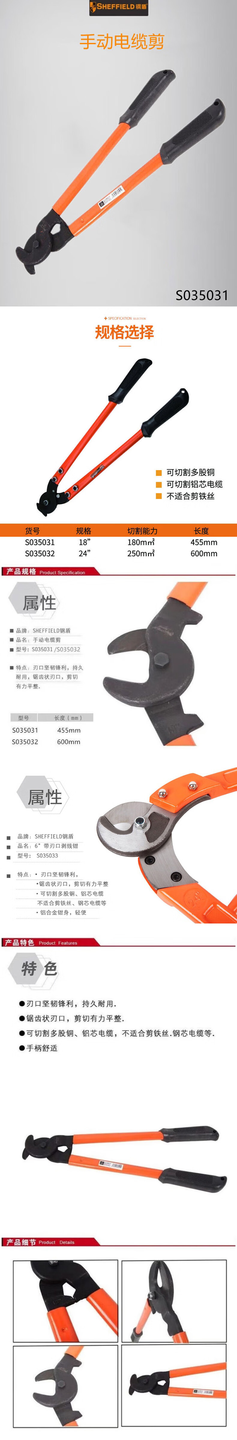 钢盾 SHEFFIELD S035033 电缆断线剪 电缆钳电缆剪子剪刀 铝合金手动电缆剪325m㎡以下 单位:把