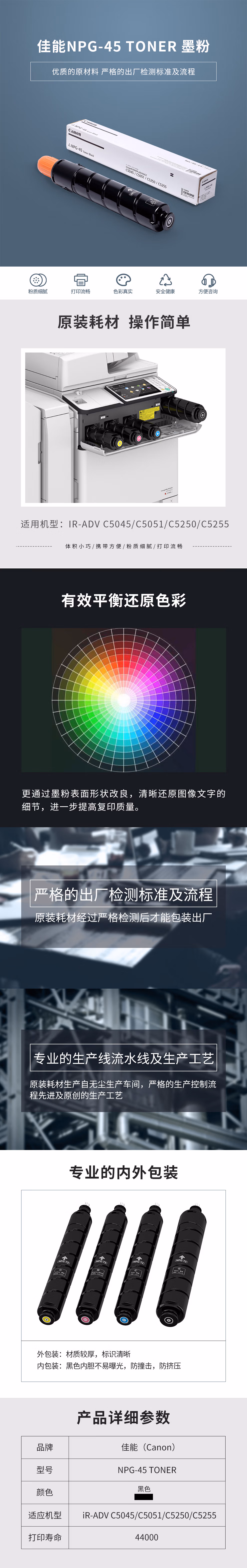 佳能(Canon) NPG-45BK 44000页 适用复合机iR-ADV C5045 5051 墨粉盒 1.00 只/支 (计价单位:支) 黑色