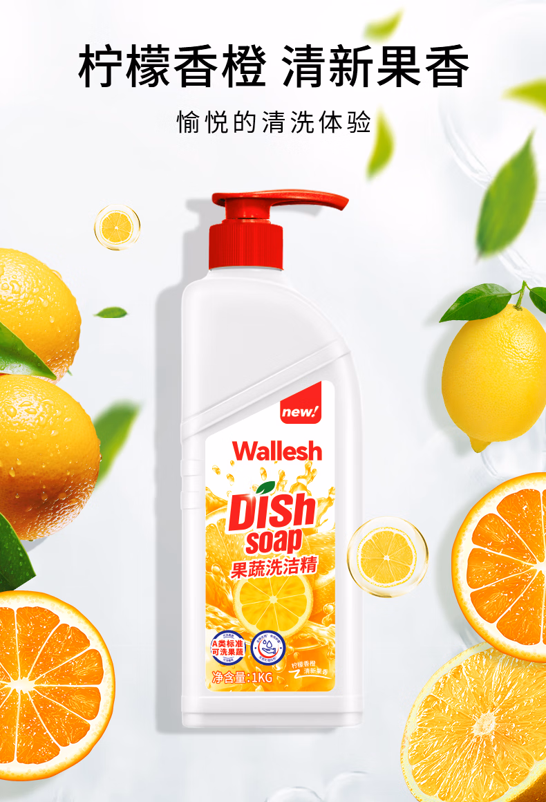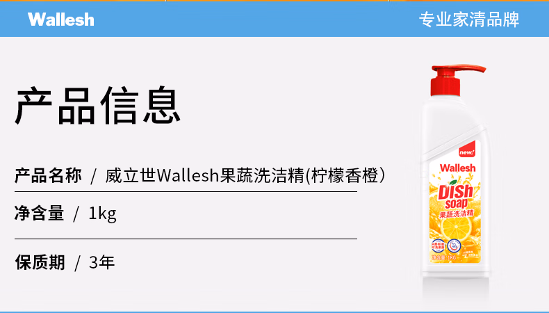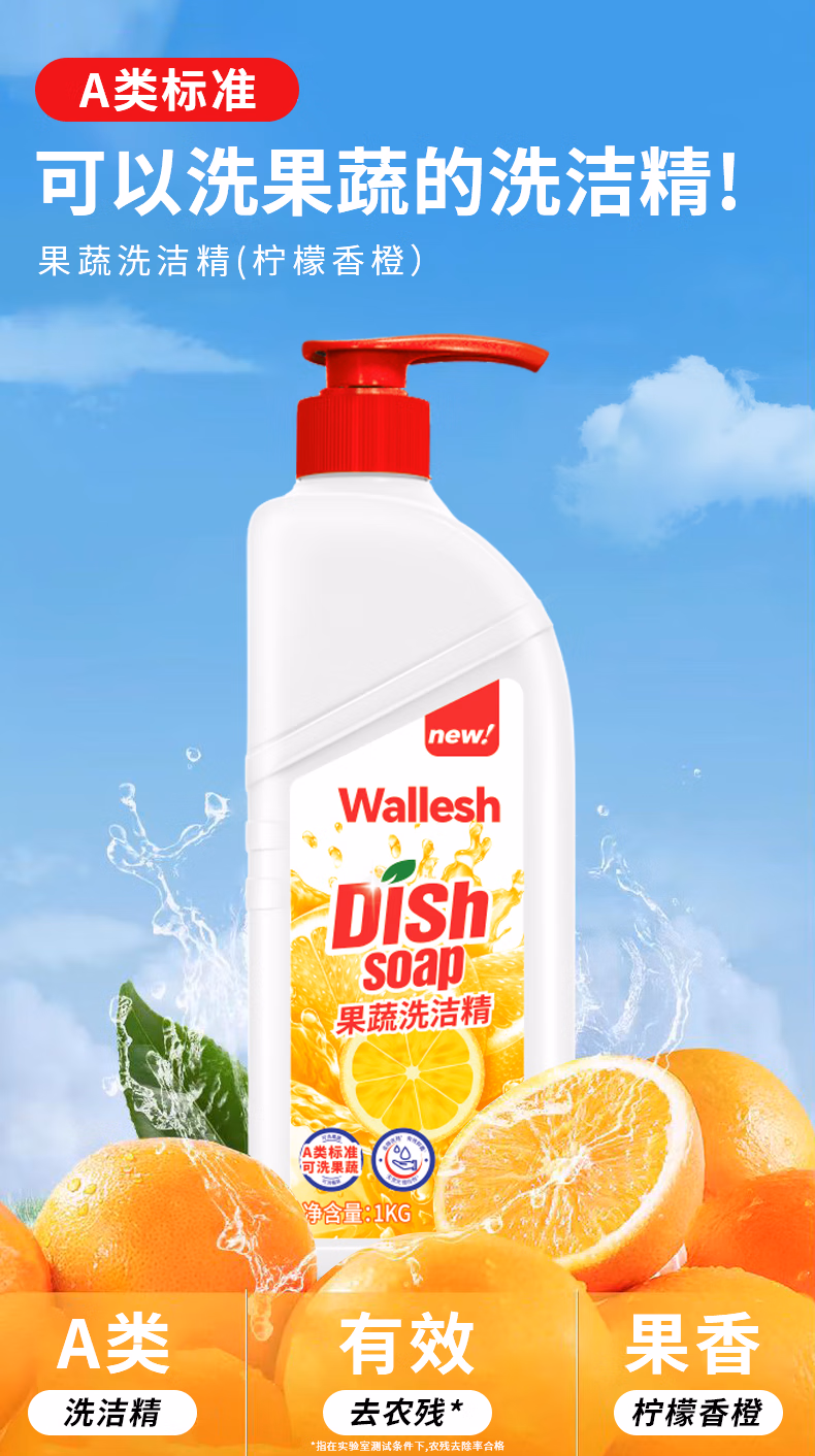 威立世(wallesh) 果蔬洗洁精(柠檬香橙)1kg 洗洁精 (计价单位:瓶) 白色