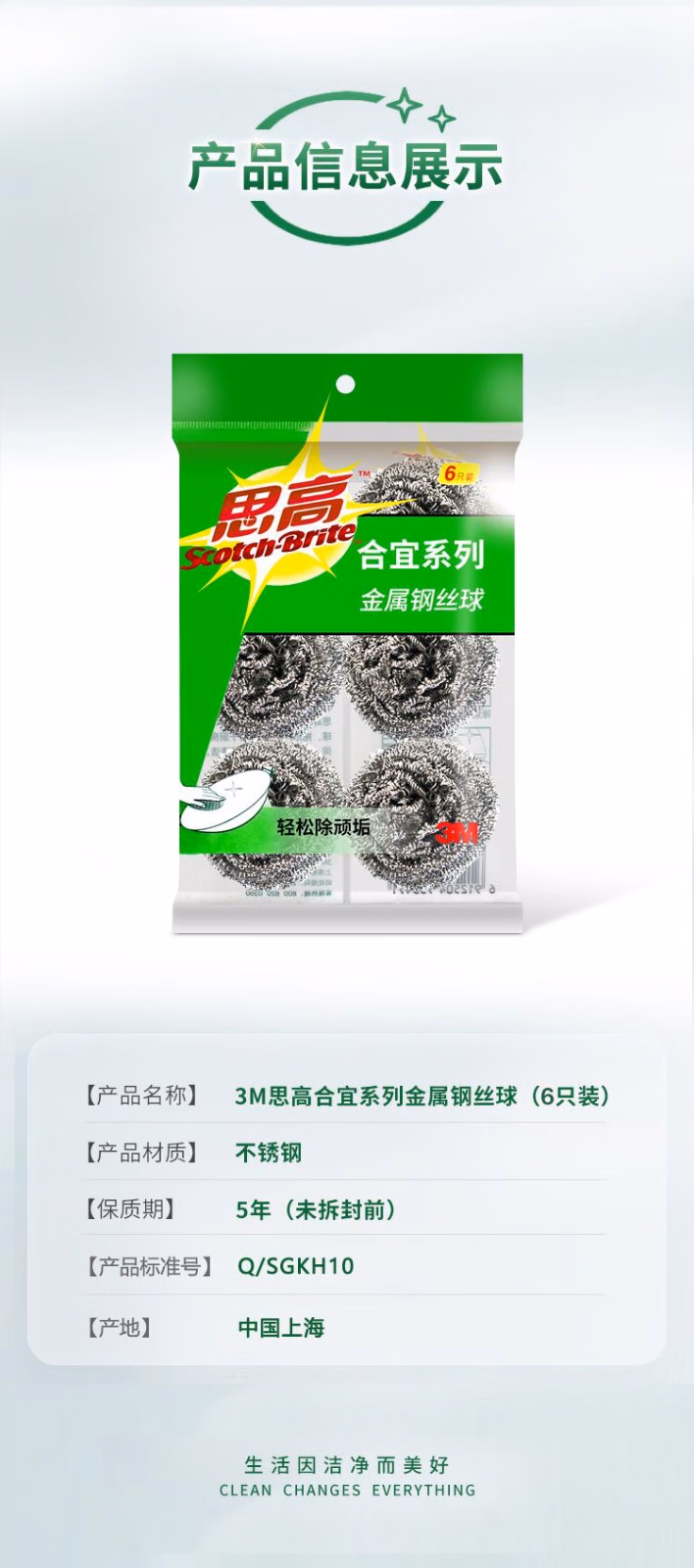 思高(SCOTCH) XY003832918 6个装 GMSB-6 金属钢丝球 (计价单位:包) 银色