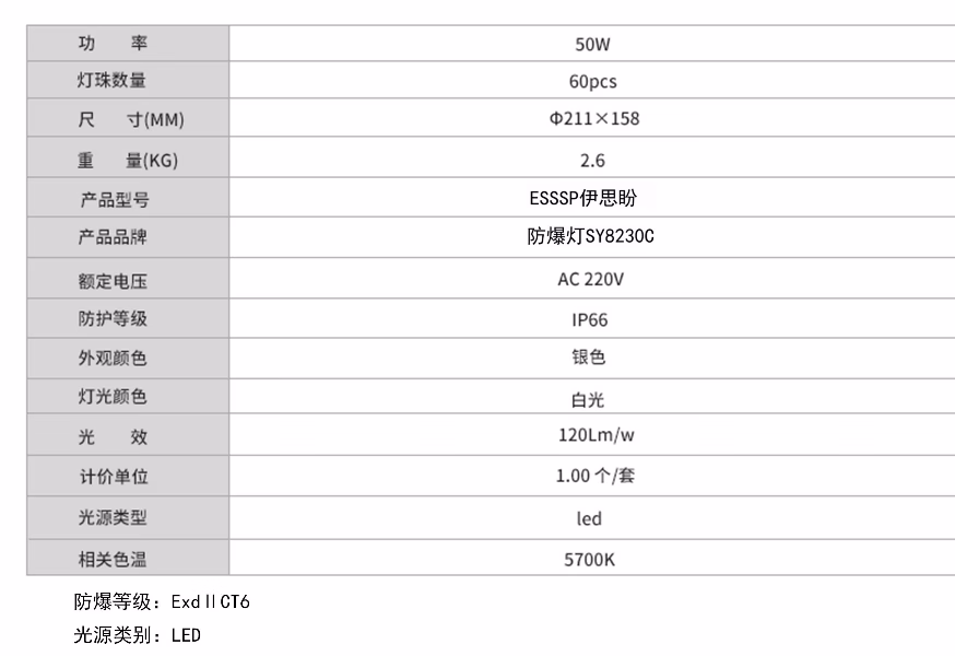 伊思盼(ESSSP) SY8230C 50W IP66 AC220V 5700K LED 防爆灯 (计价单位:盏) 灰色