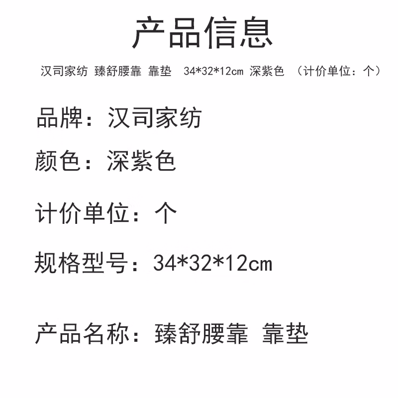 汉司家纺 臻舒腰靠 靠垫 34X32X12cm 靠垫 1.00 件/个 (计价单位:个) 深紫色