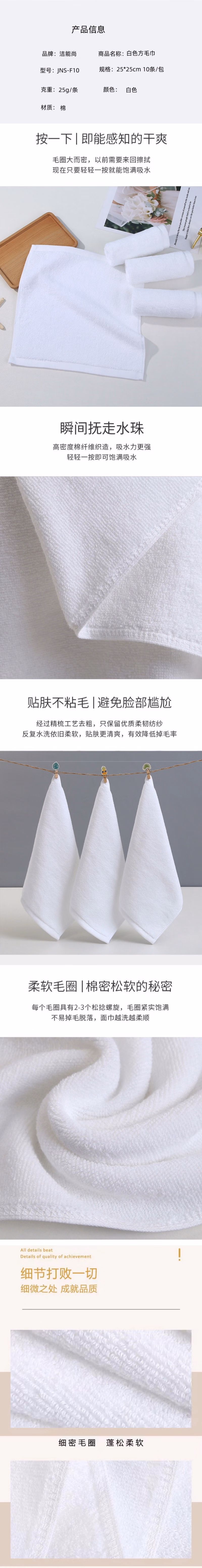 洁能尚 JNS-F10 25*25cm 10条 毛巾 10.00 条/包 (计价单位:包) 白色