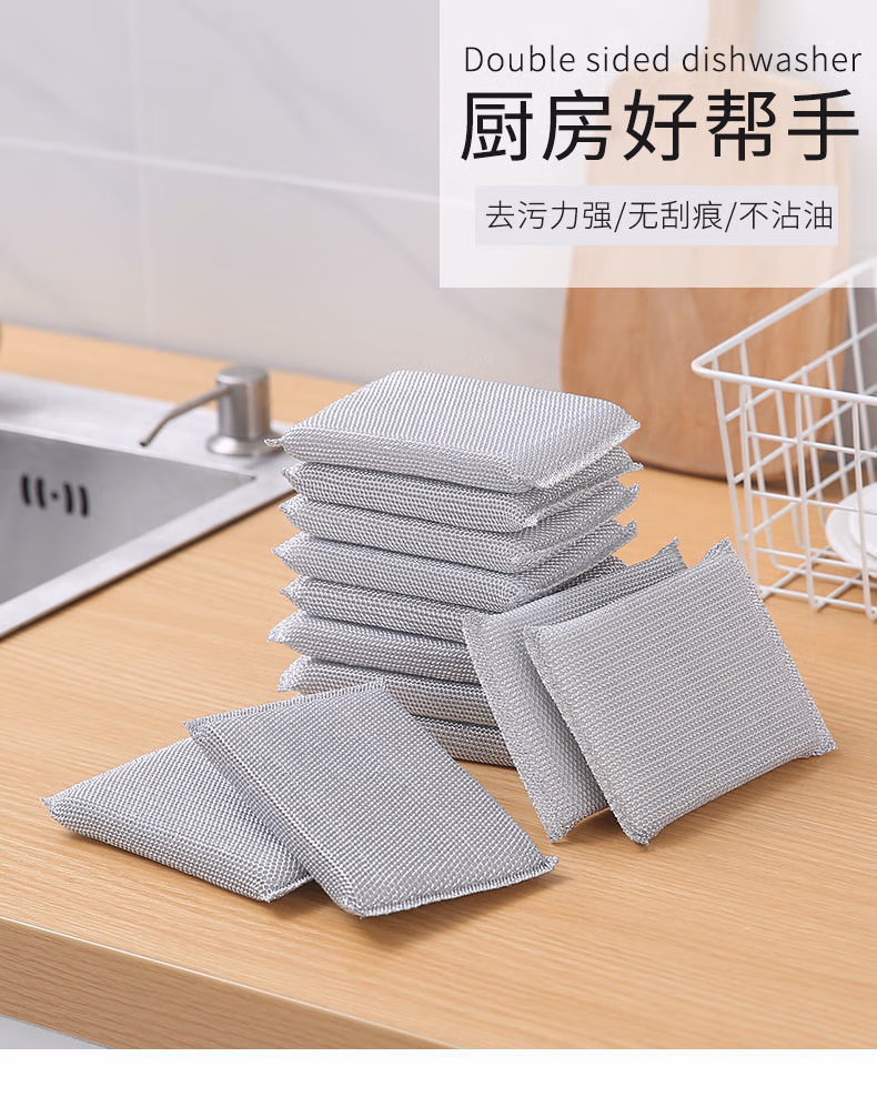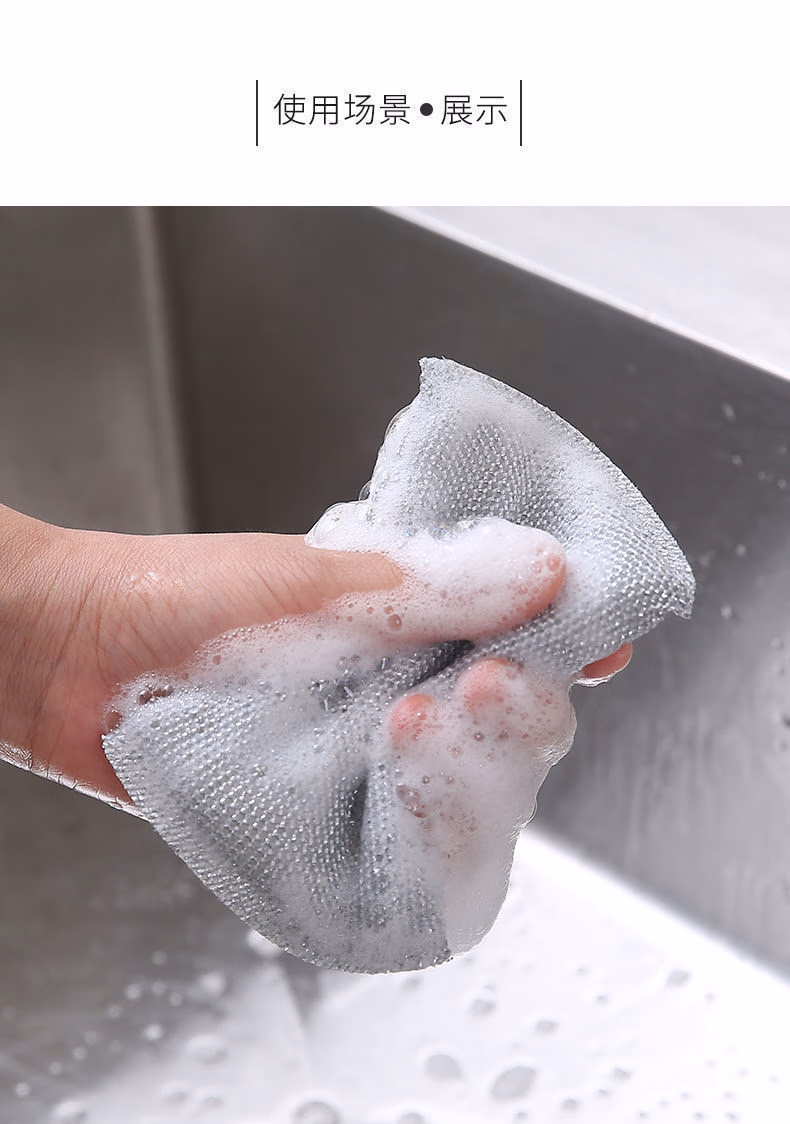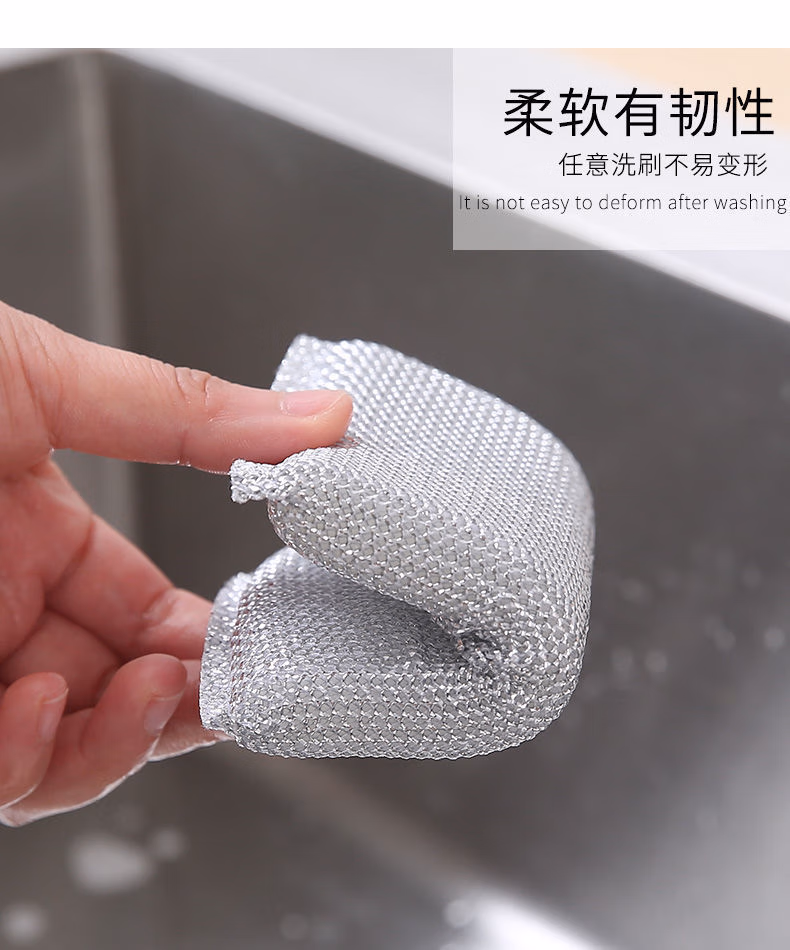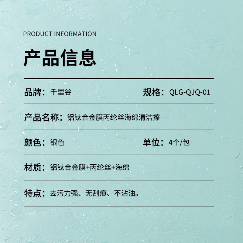 千里谷 QLG-QJQ-01 铝钛合金膜丙纶丝海绵清洁擦 4个 洗碗巾 (计价单位:包) 银色