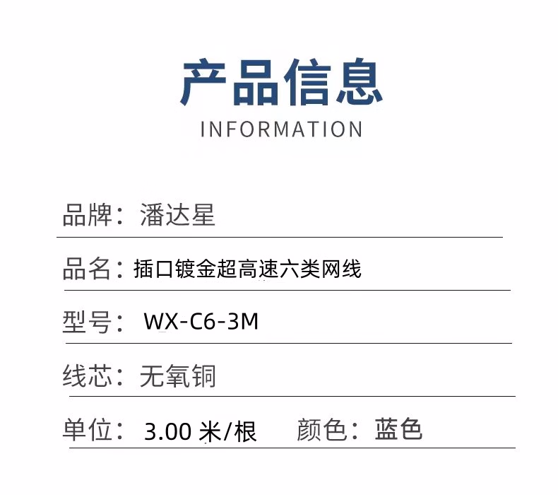 潘达星 WX-C6-3M 3.00 米/根 网线 3.00 米/根 (计价单位:根) 蓝色