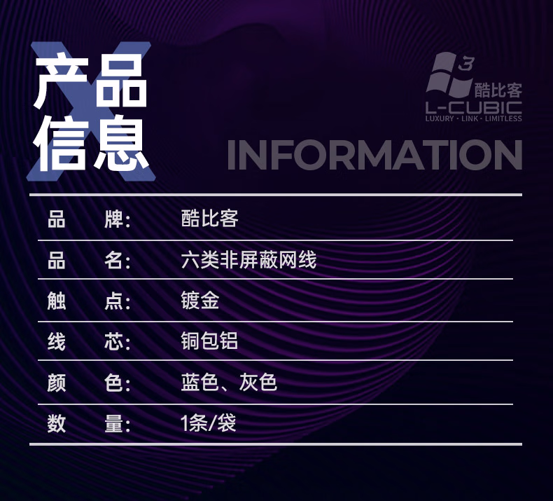 酷比客(L-CUBIC) LCN6RACBU 5M 网线 5.00 米/条 (计价单位:条) 蓝色
