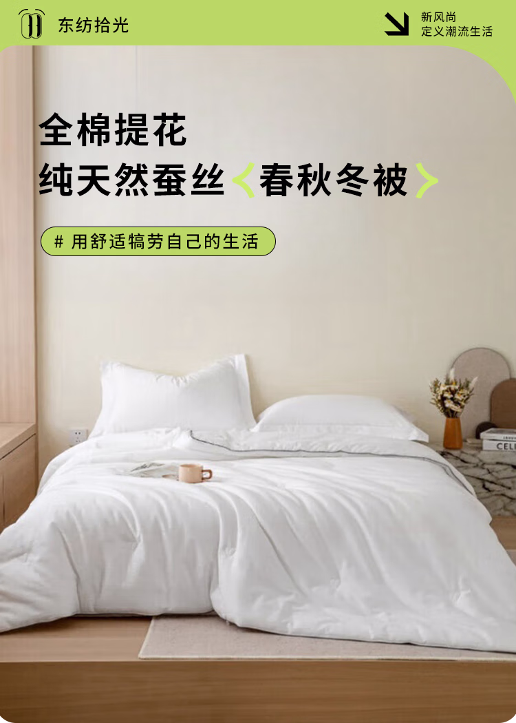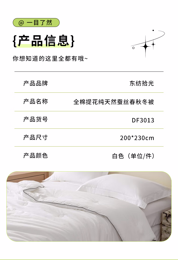 东纺拾光 DF3013 200*230cm全棉提花纯天然蚕丝春秋冬被 被子 (计价单位:件) 白色