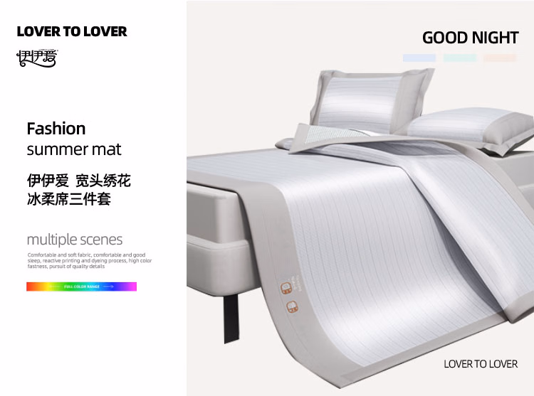 伊伊爱 XZ0AN02400004 150*200cm 宽头绣花良品冰柔席三件套 凉席 3.00 件/套 (计价单位:套) 灰色