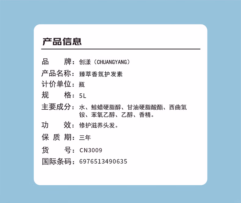 创漾(CHUANGYANG) CN3009 臻萃香氛护发素5L 护发素 1.00 瓶/桶 (计价单位:桶) 白色