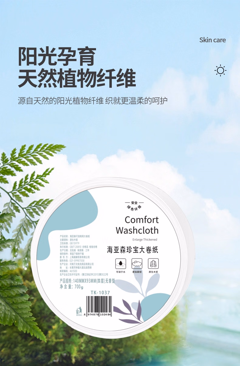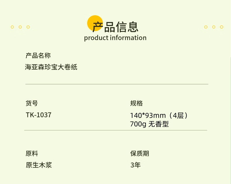 海亚森 TK-1037 100*92mm(四层) 600g 1010节/卷 无香型 珍宝大卷纸 1.00 提/卷 (计价单位:卷) 白色