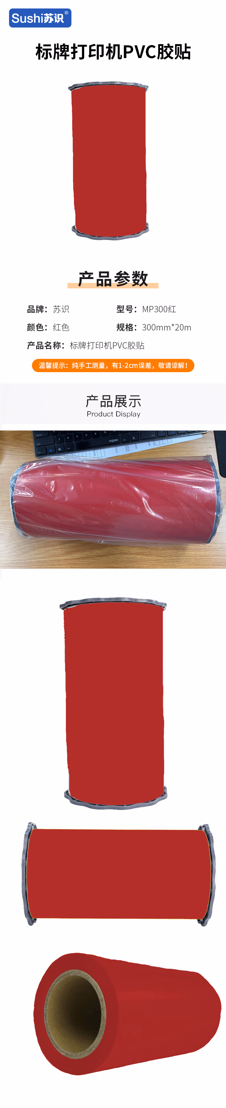 • 商品名称:苏识 MP300红 300mm*20m 标牌打印机PVC胶贴 (计价单位:卷) 红色