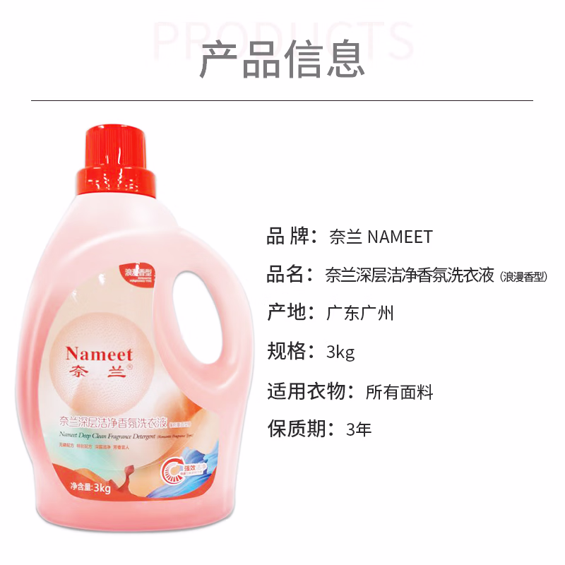 奈兰(NAMEET) 3kg深层洁净香氛洗衣液浪漫香型 洗衣液 (计价单位:瓶) 粉色