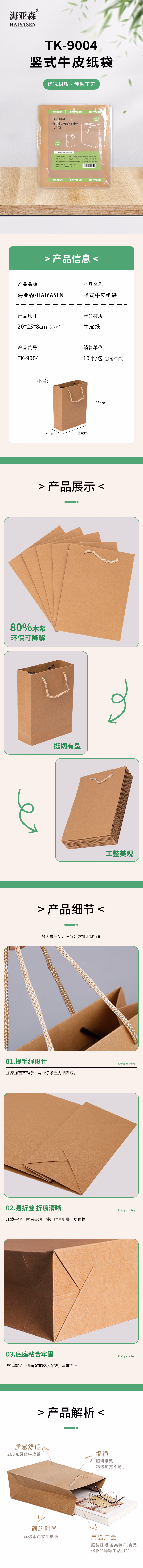 海亚森 TK-9004 20*25*8cm (棉绳黄浆)小号 竖式牛皮纸袋 10.00 个/包 (计价单位:包) 本色