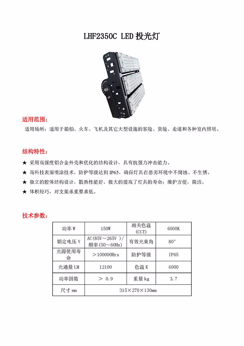 • 商品名称:LHF2350C LED投光灯 150W 220V 冷光 IP65(计价单位:个)黑色