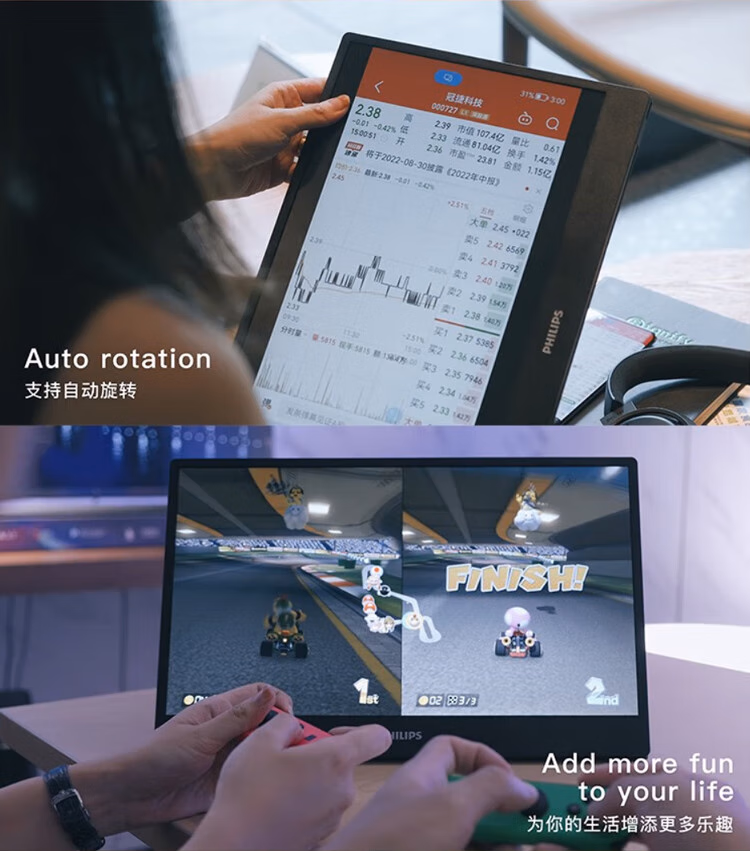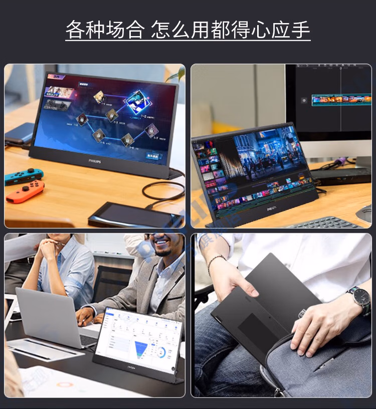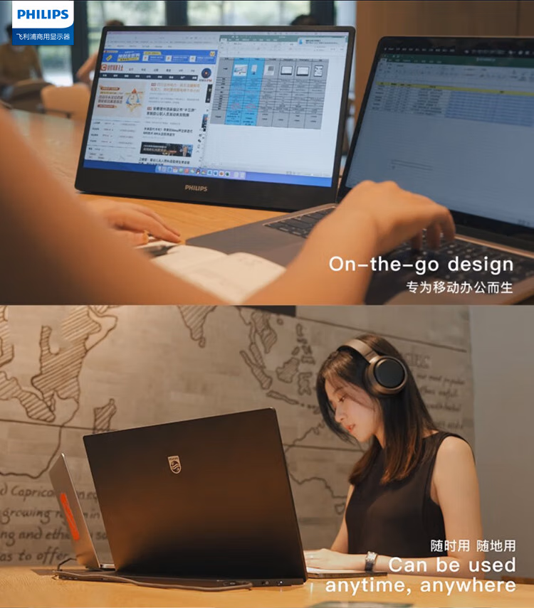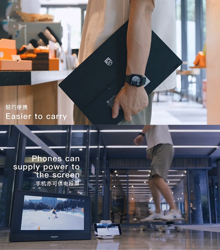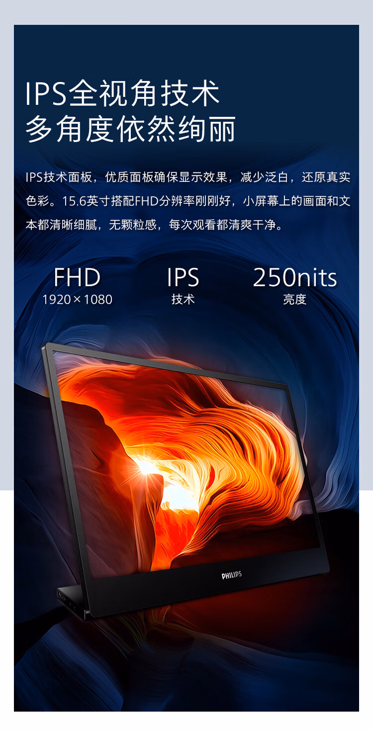 飞利浦(Philips) 16B1P3300 15.6英寸便携式显示器 HDR IPS 1080P Type-C接口 纤薄机身 外接PS4笔记本 电脑显示器 (计价单位:台) 黑色