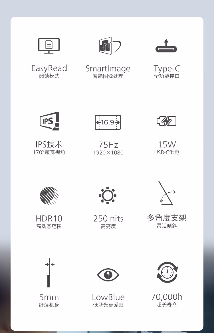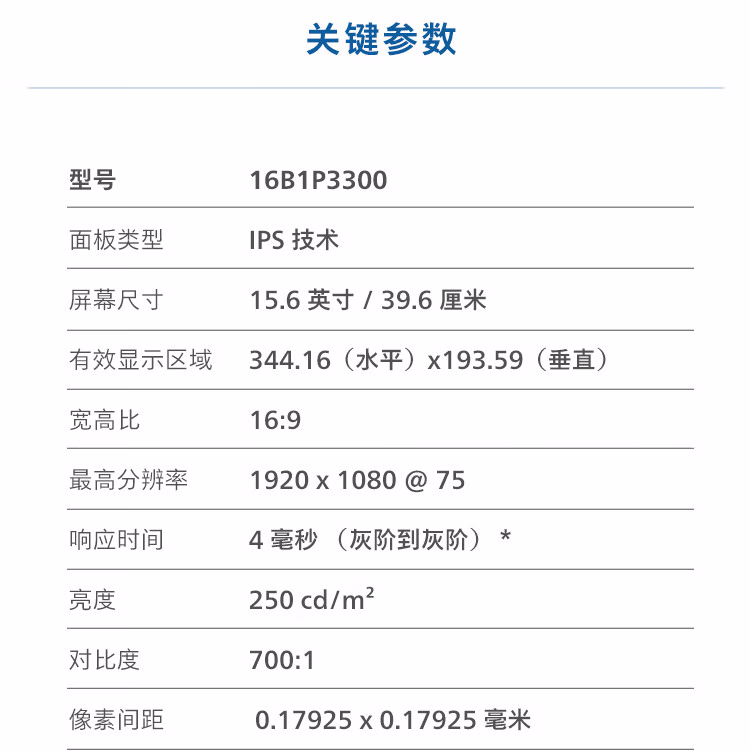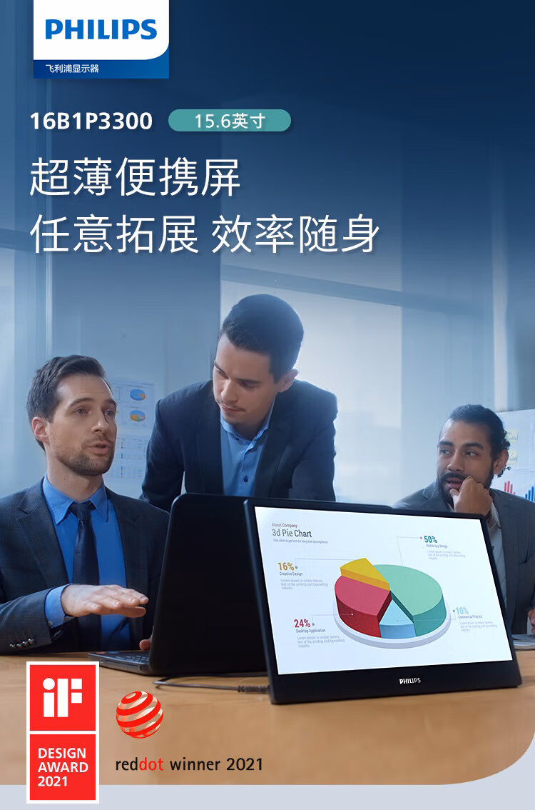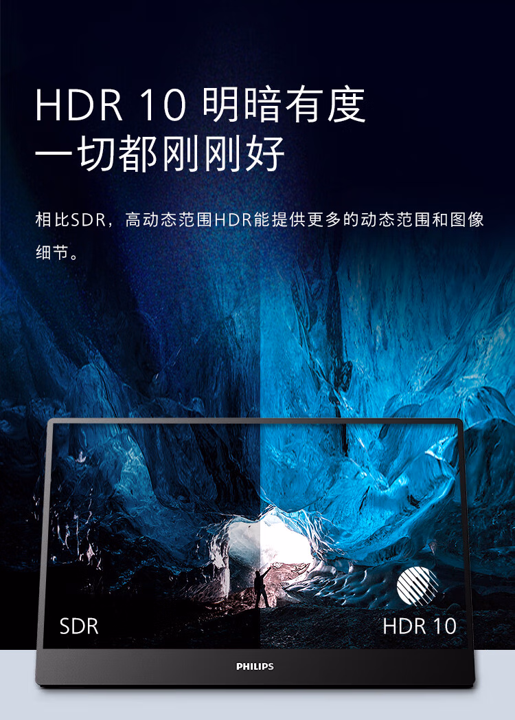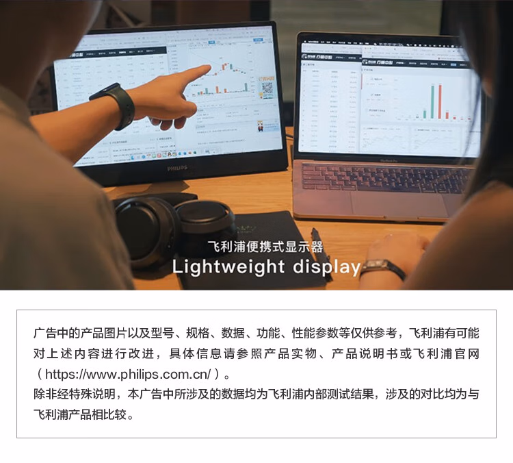 飞利浦(Philips) 16B1P3300 15.6英寸便携式显示器 HDR IPS 1080P Type-C接口 纤薄机身 外接PS4笔记本 电脑显示器 (计价单位:台) 黑色