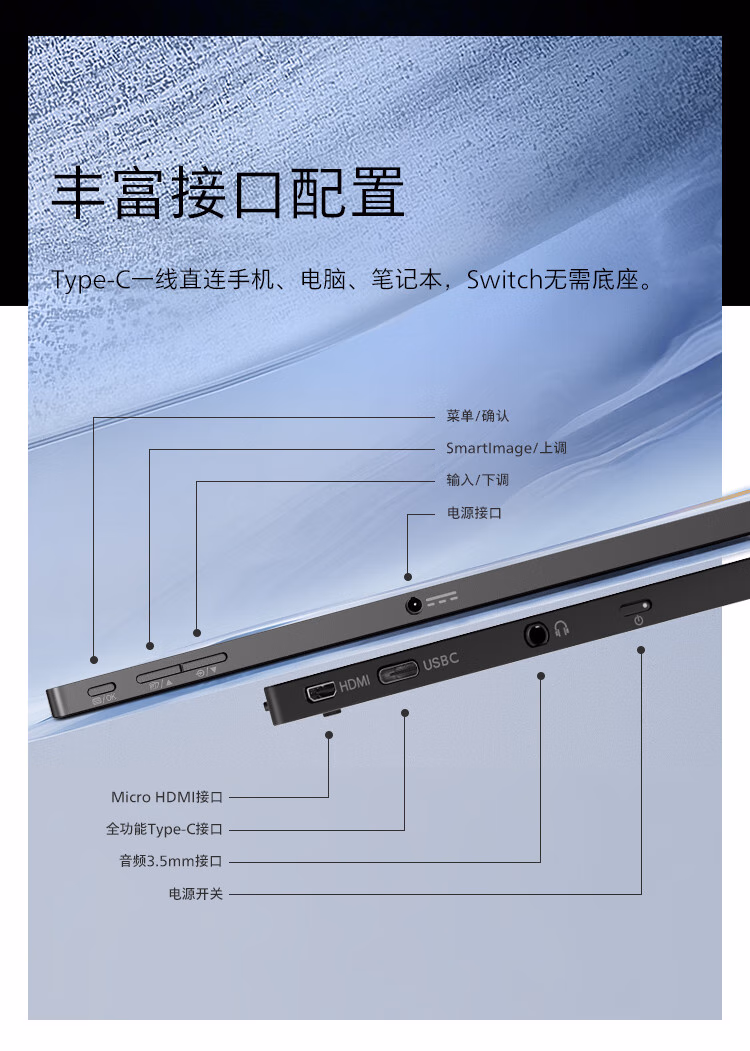 • 接口:Type-C,HDMI,音频/耳机输出