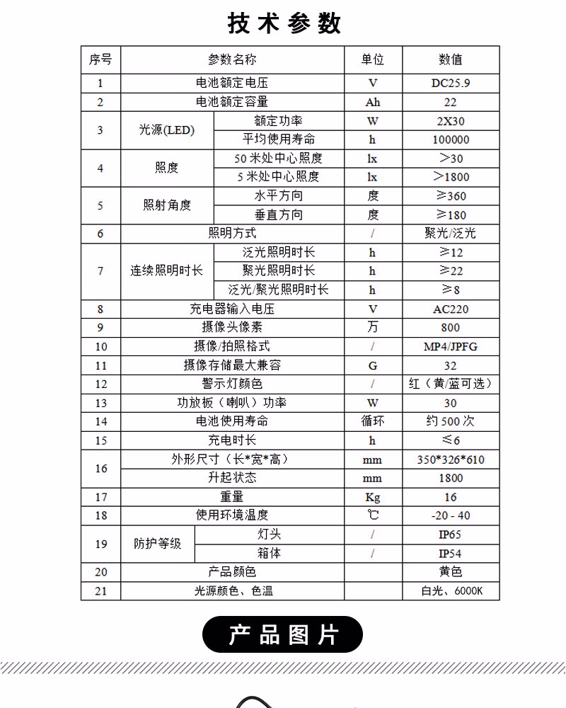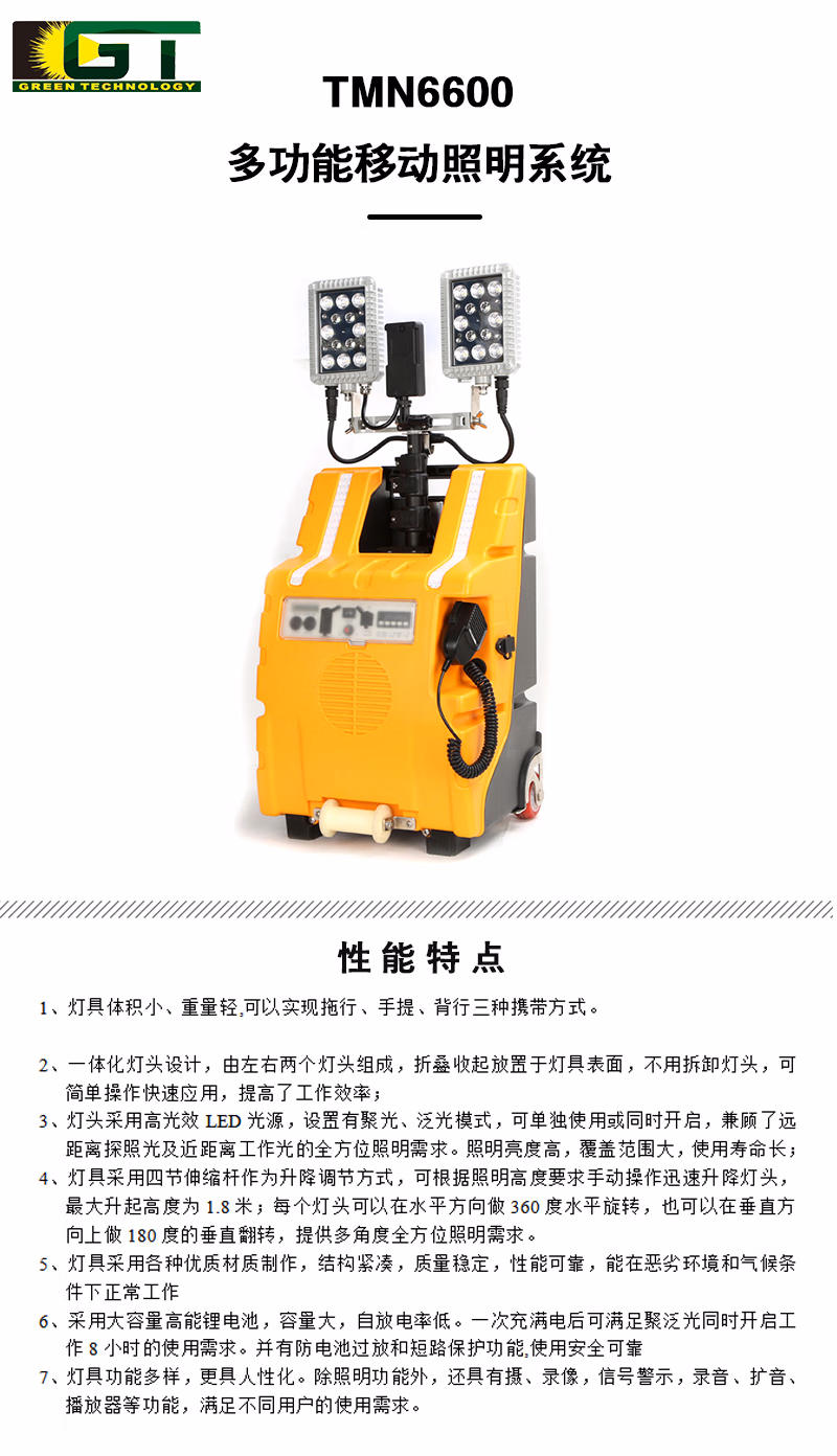 • 商品名称:吉特(GT) 多功能移动照明系统 TMN6600,2*30W,灯头IP65,箱体IP54 主机