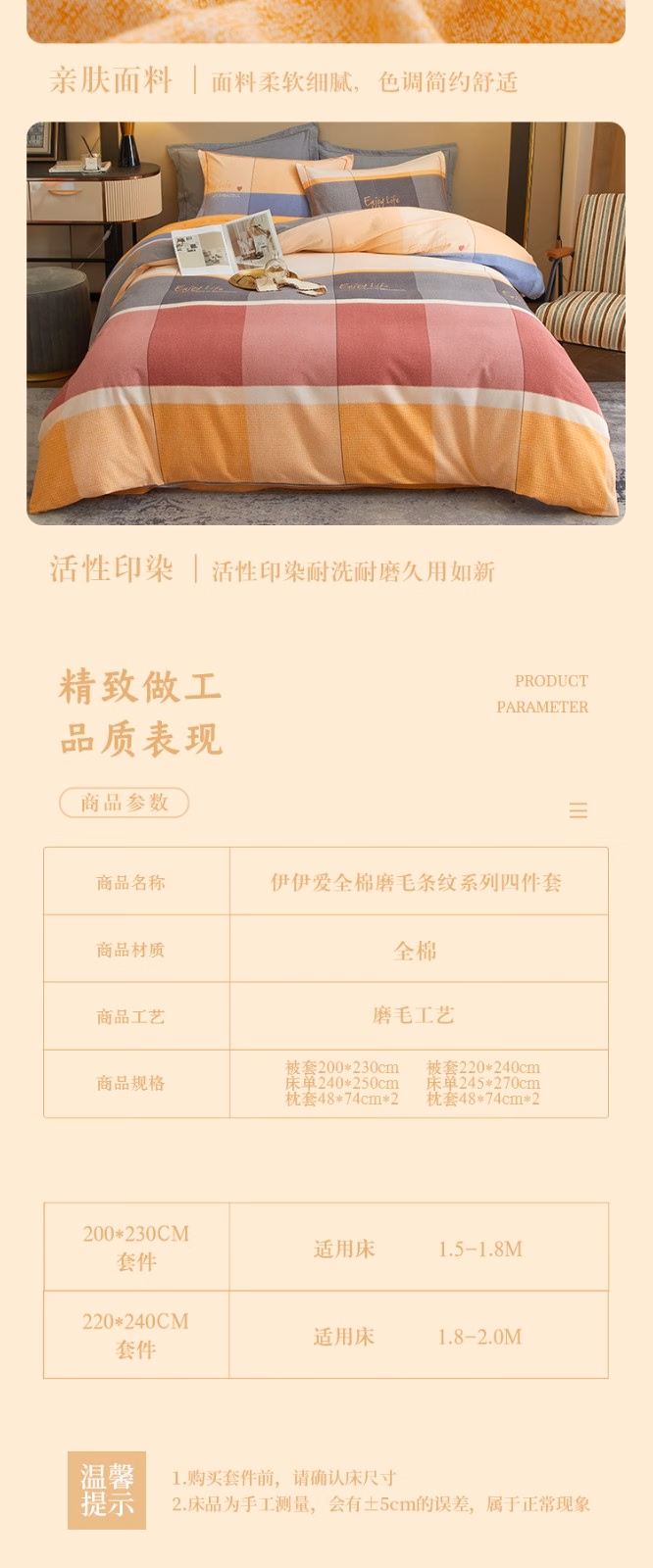 伊伊爱 TJ0HJC2201662 /220*240cm 全棉磨毛条纹四件套 (计价单位:套) 梅妮雅
